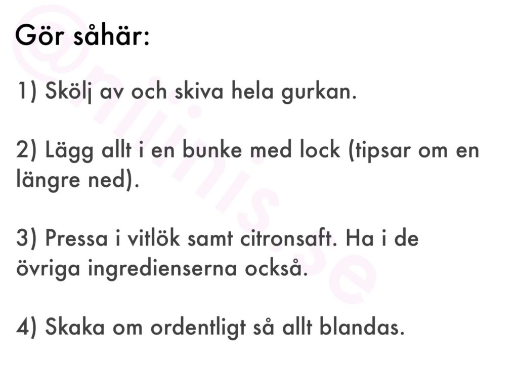 Har du inte ovan produkter (rekommenderas starkt dock) hemma och ändå vill göra denna gurksallad, så byt ut Coconut amino & Tamari mot Japansk soja, och avokadoolja mot olivolja.
