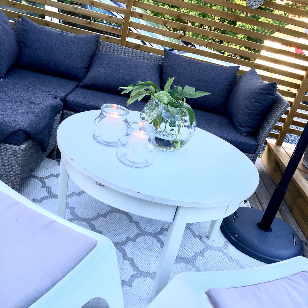 Ikväll så hade vi ”tända-ljus” middag i uterummet. Tony grillade medan jag målade. Vi har fått upp högtalare nu så vi hade på lite soft musik också. Huuur mysigt!?