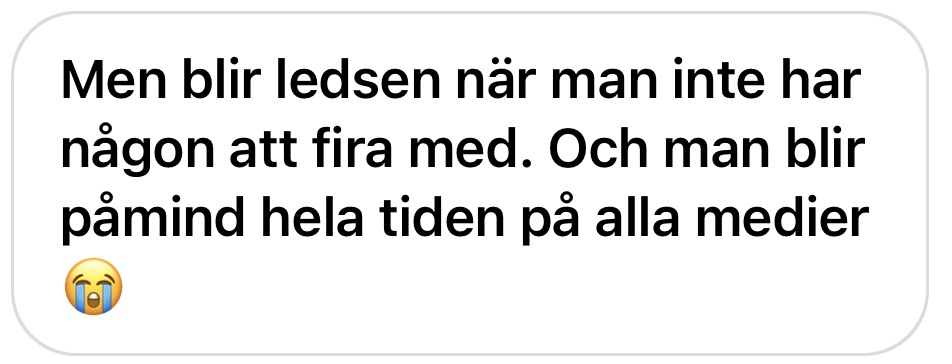 …och är du singel eller på annat sätt inte kan vara med din partner. Kanske finns det någon annan som sitter i samma situation? Kan man fira med den? Älskade kommentaren ovan.