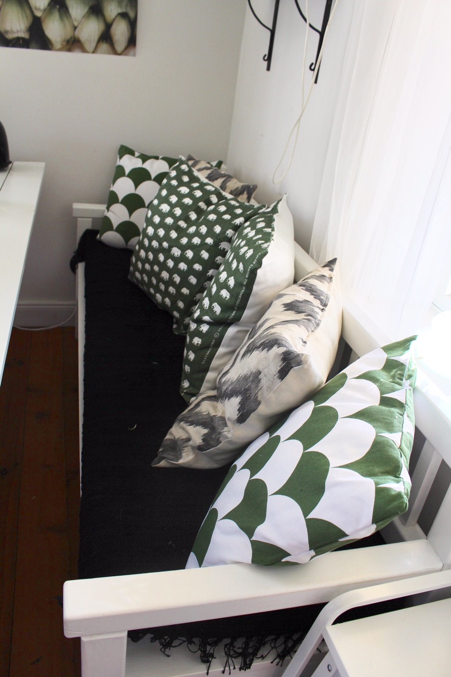 Kudde, hur fint blev de med de gröna kuddarna till mina Svensk Tenn kuddar?