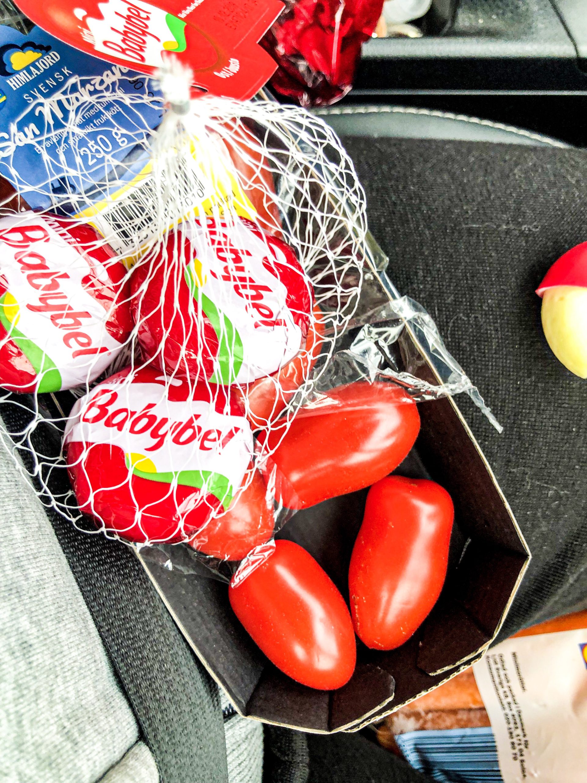 Vi har just ätit lite sen ”mellis” här i bilen. Vi ska nämligen äta när vi kommer fram så något litet för att inte vara vrålhungrig.