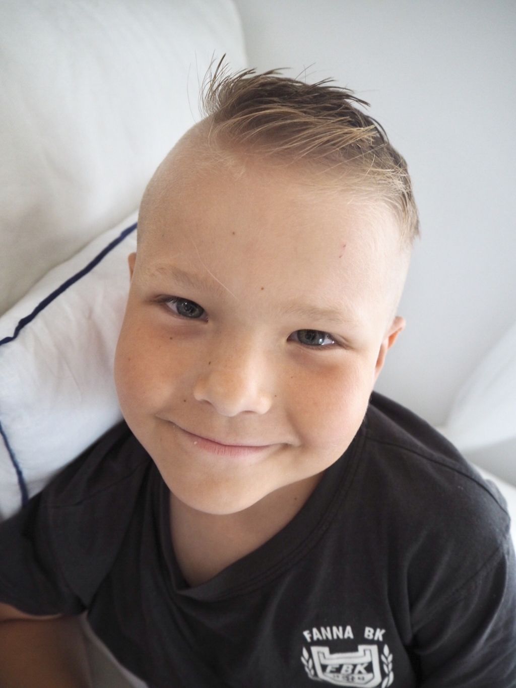 Han fick också sig en sommarfrisyr igår. Det har blivit en tradition att klippa håret på årets första sommarlovsdag. Rakat på sidorna nu och kort uppepå.