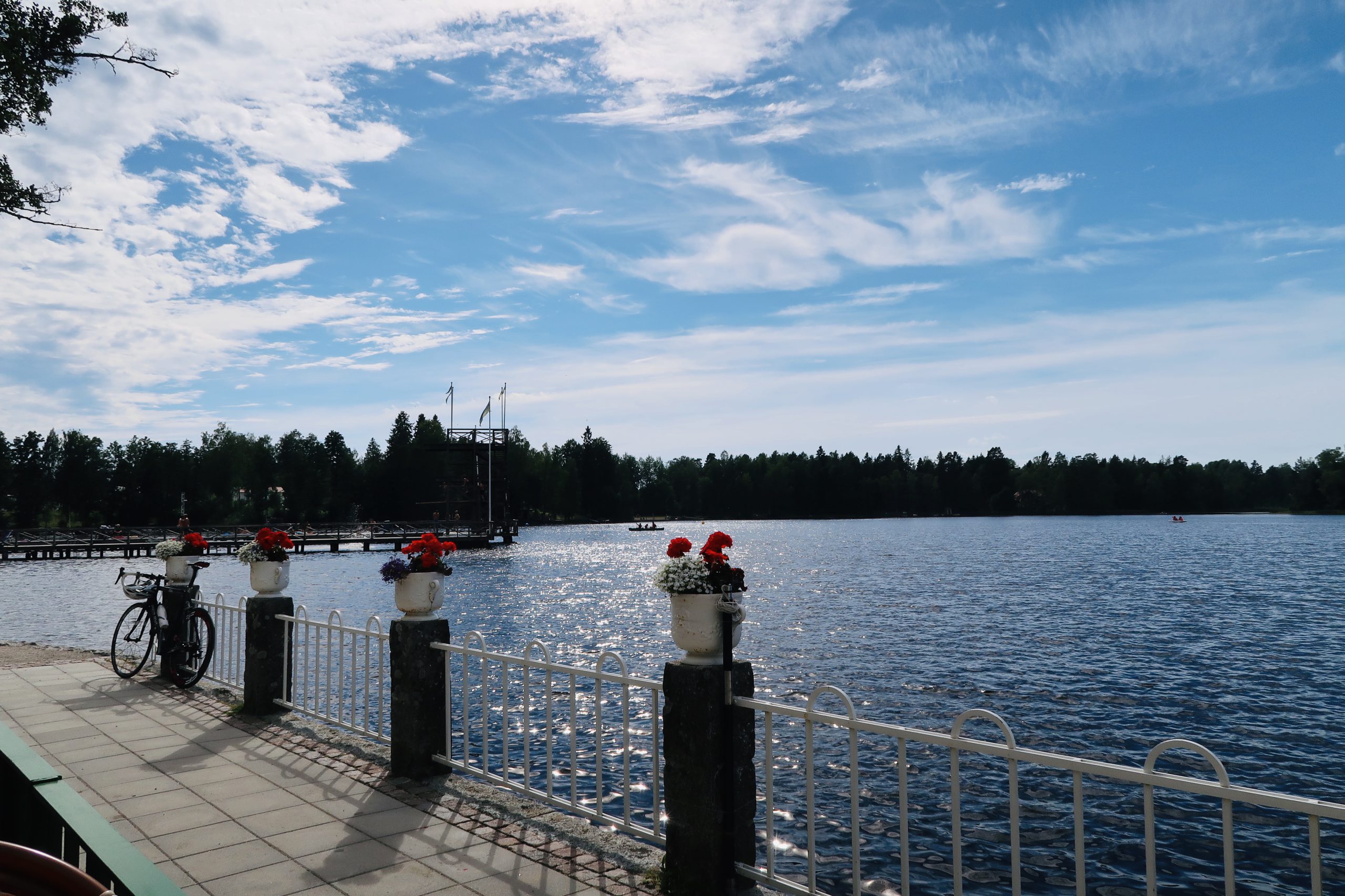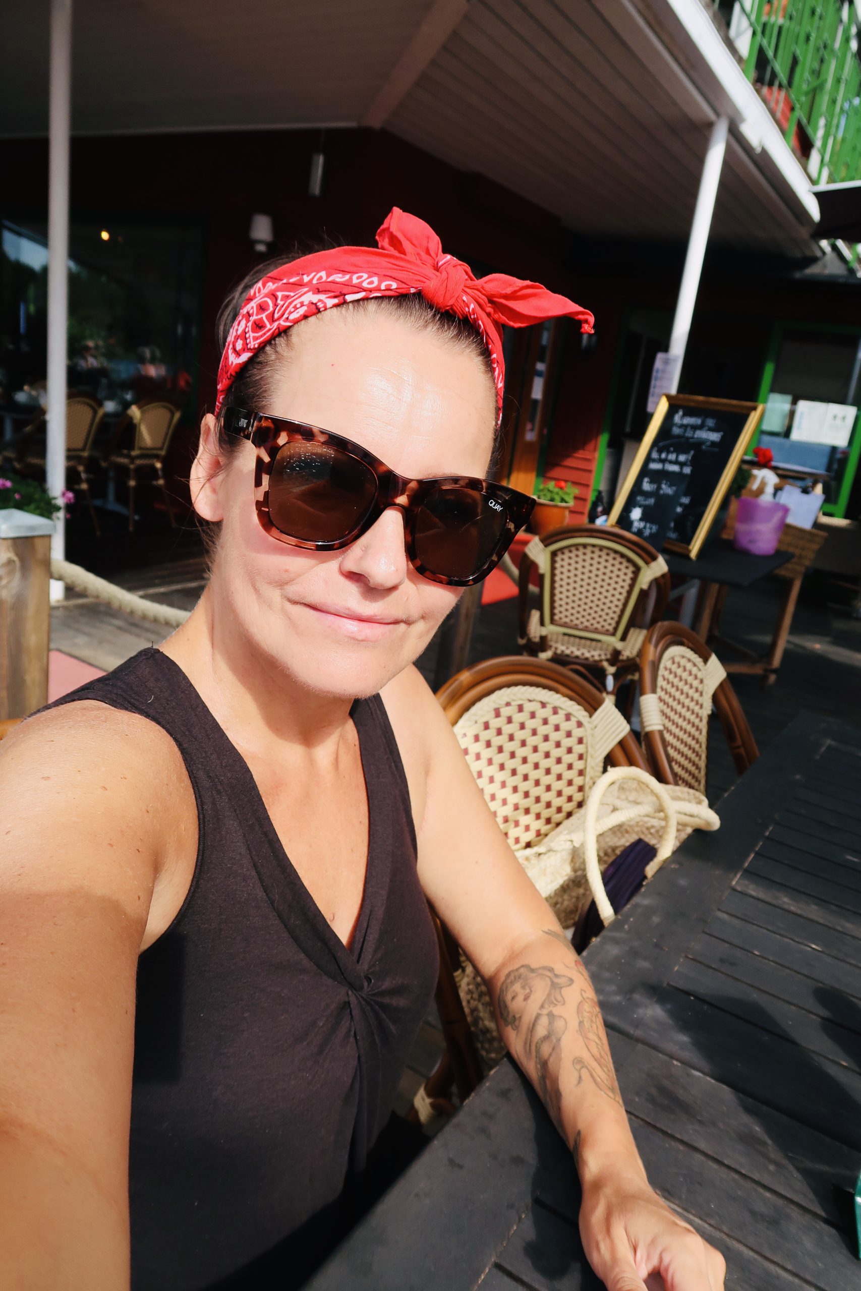 Vi satte oss på bryggan där det fläktade bäst. Där kände man inte av värmen på samma sätt. 31 grader igår hörni, fantastiskt vilken värme som strömmar emot oss nu.