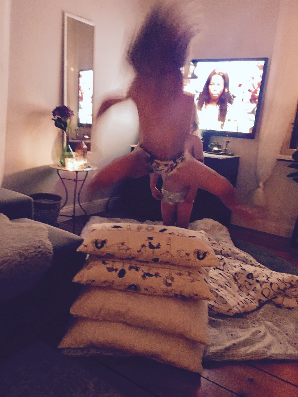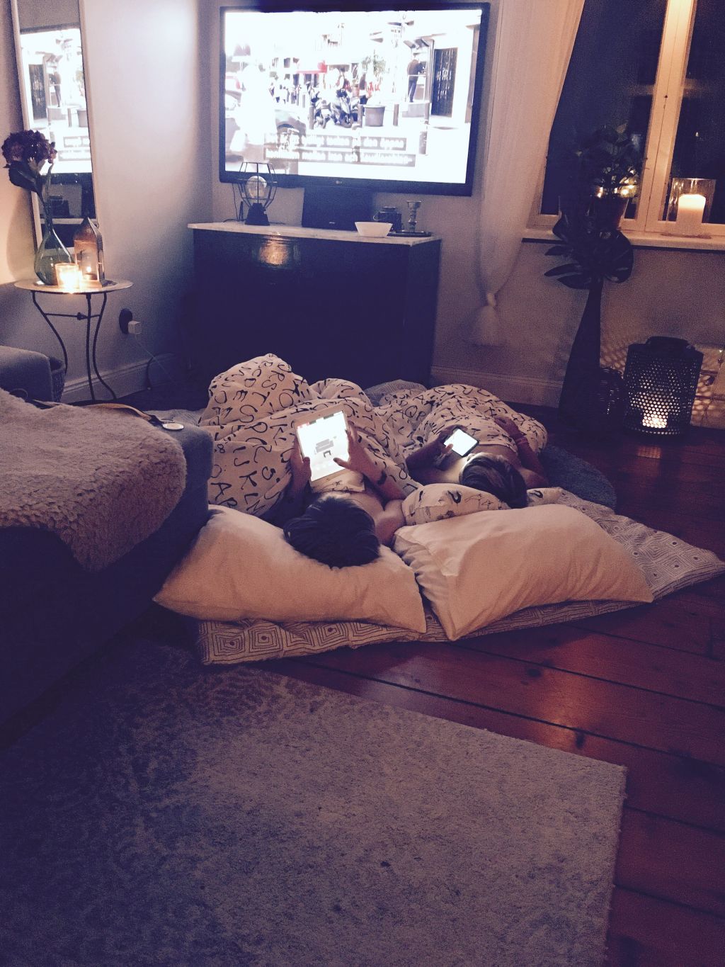 Något jag fick med var när kidsen gick all in på kuddhopp i vardagsrummet. Jag bäddade åt dem framför TV:n så de kunde ha lite mys medan vi tittade på ”Så mycket bättre”. Ja ni ser ju hur lugnt och mys det blev….haha!