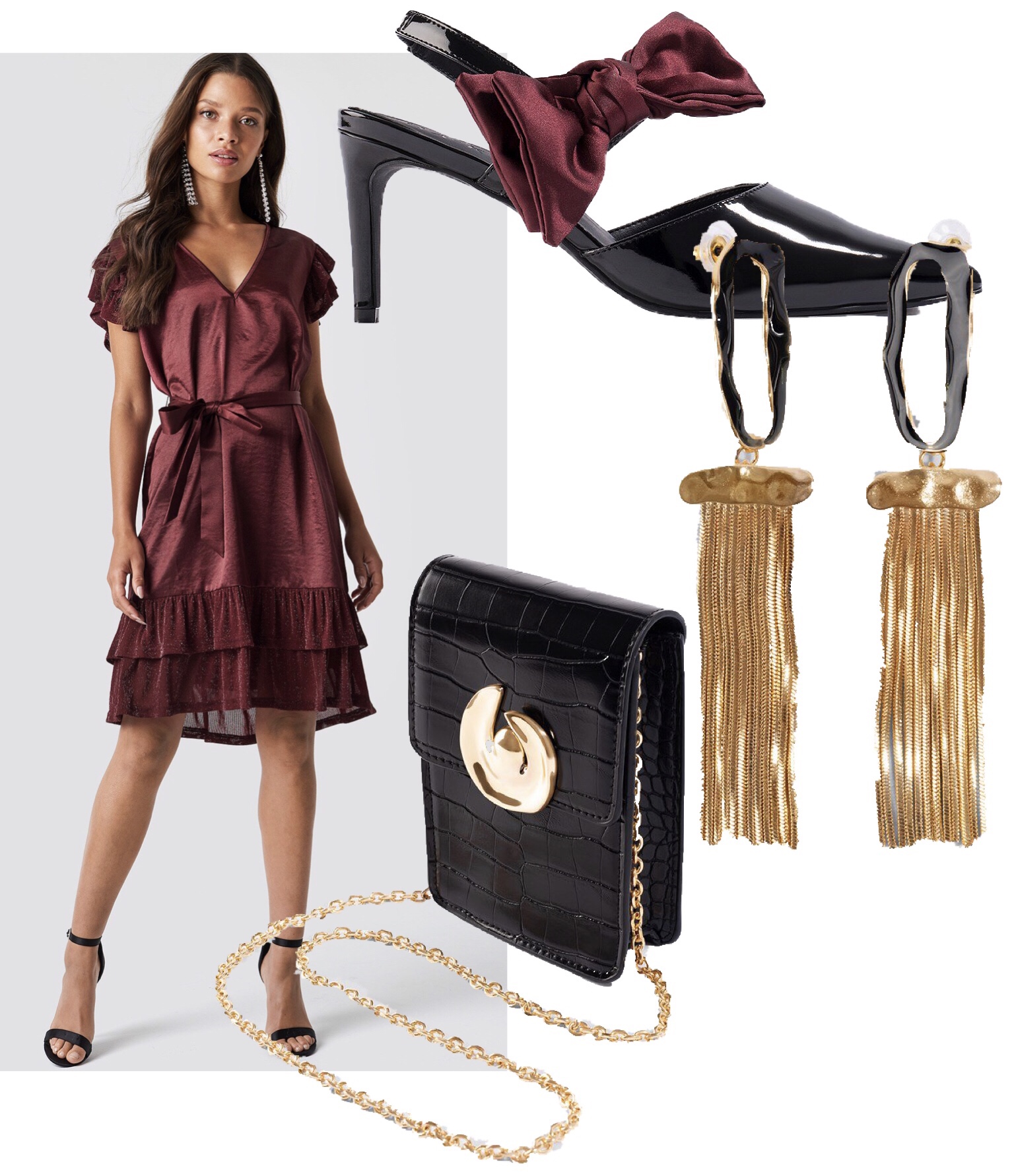 Klänning // Örhängen // Skor // Väska
