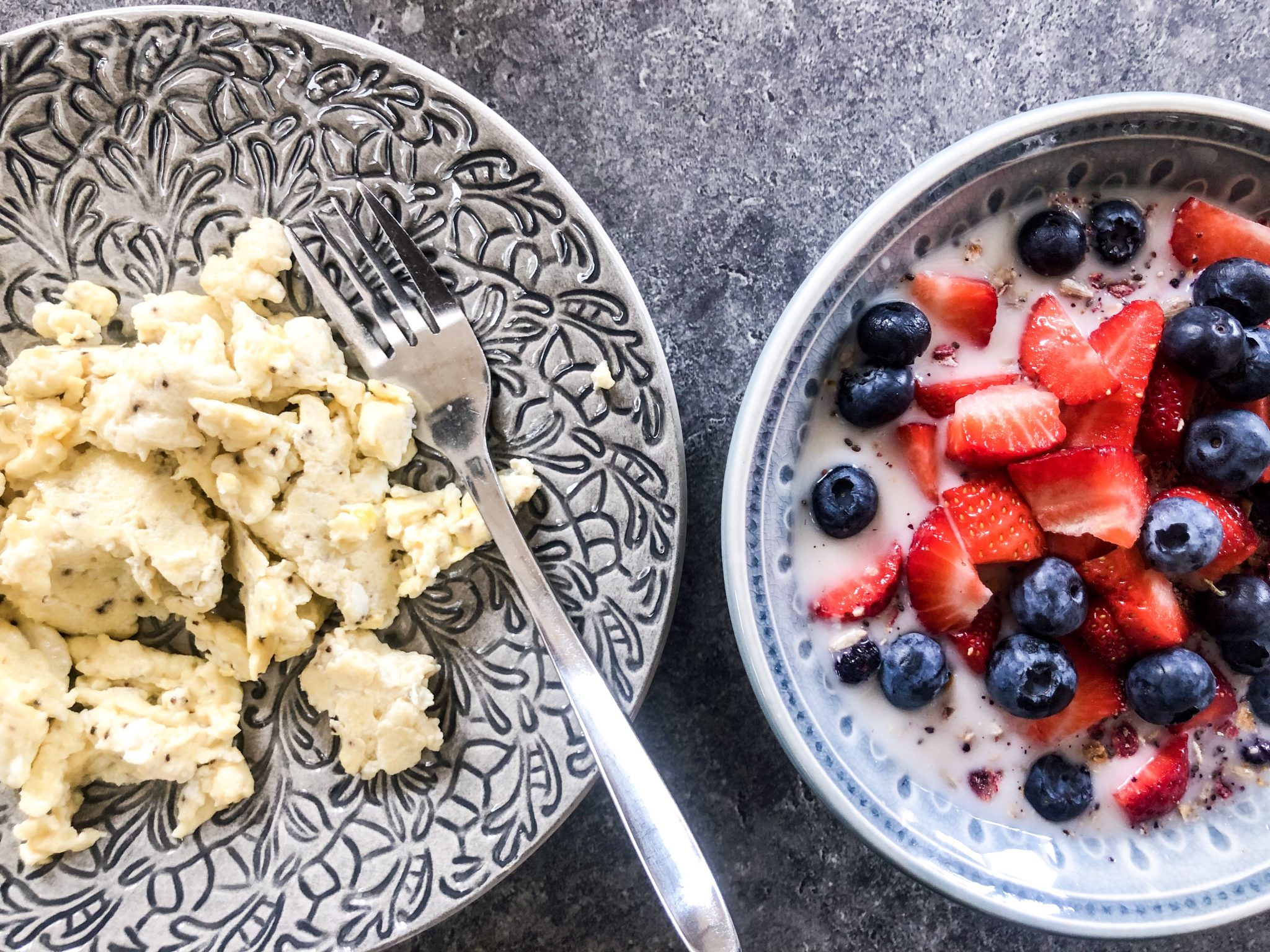 Efter träning blev det välbehövlig frukost. Jag dricker en proteinshake innan träningen så att jag orkar, och sen ordentlig frukost efter.
