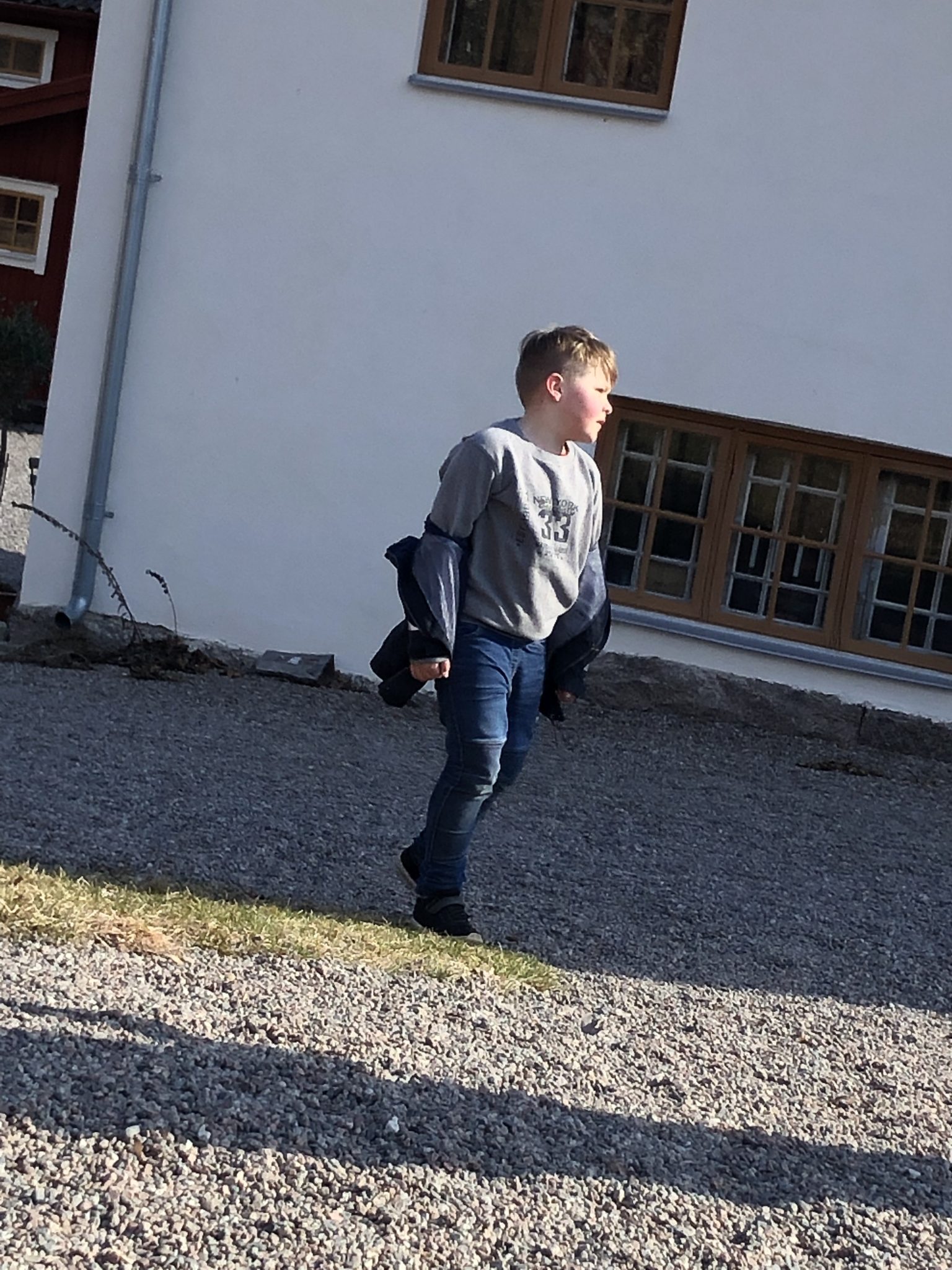 Så skönt så jackan satt på på halvfart. Då hör man ofta mitt kackel: ”Ta på dig jackan, kom ihåg att du är lite förkyld fortfarande och att det kan bli värre om man blir kall”. Jag minns själv när man var liten och man ville klä av sig på våren och aldrig fick.