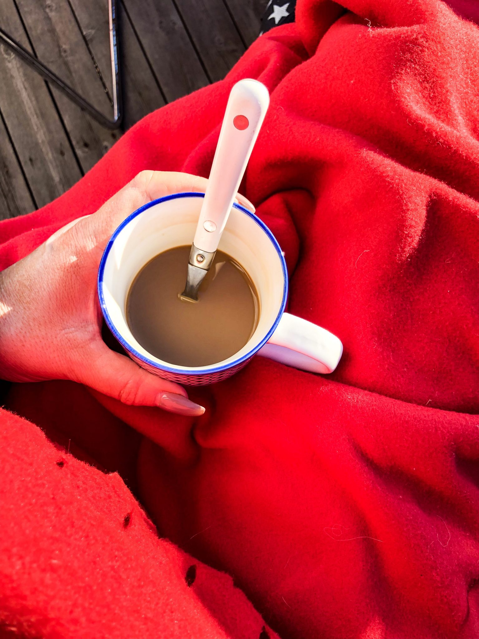 Det blev också en fika nr:2. Vi satt inlindade i filtar när klockan blev senare, men det gick fortfarande att sitta ute. Så ljuvligt! Efter fikat rullade vi hemåt bokstavligt talat.