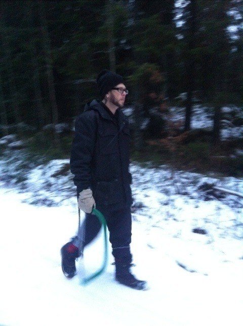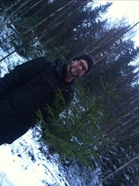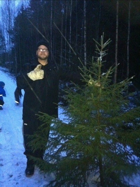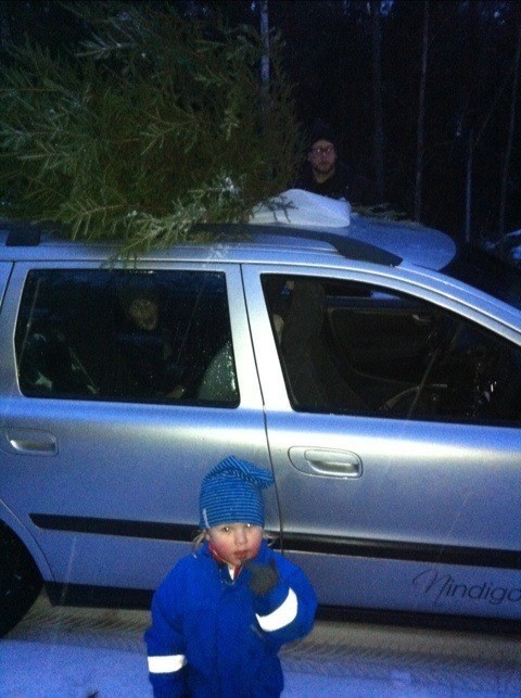 Igår var vi och leta efter en julgran, 4 femtedelar av familjen. Hade lite bråttom att hinna innan det mörknade.