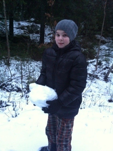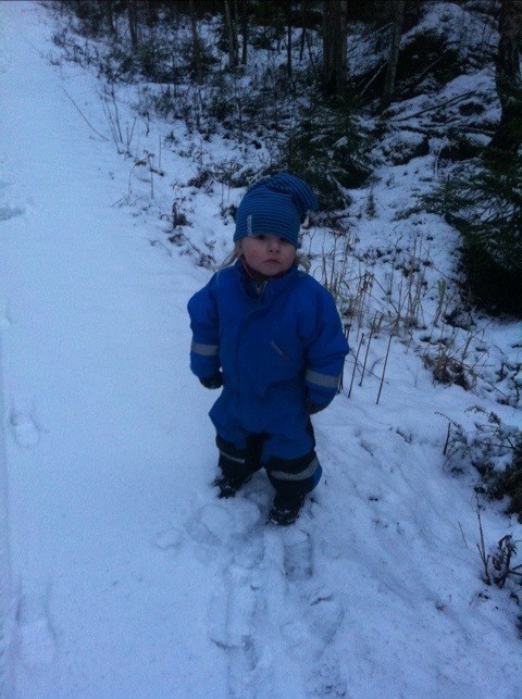 Elliot fick ha på sig sina termobyxor för första gången i år och dom hade han visst vuxit ur så det blir till att köpa nya. Snöänglar blev det också.