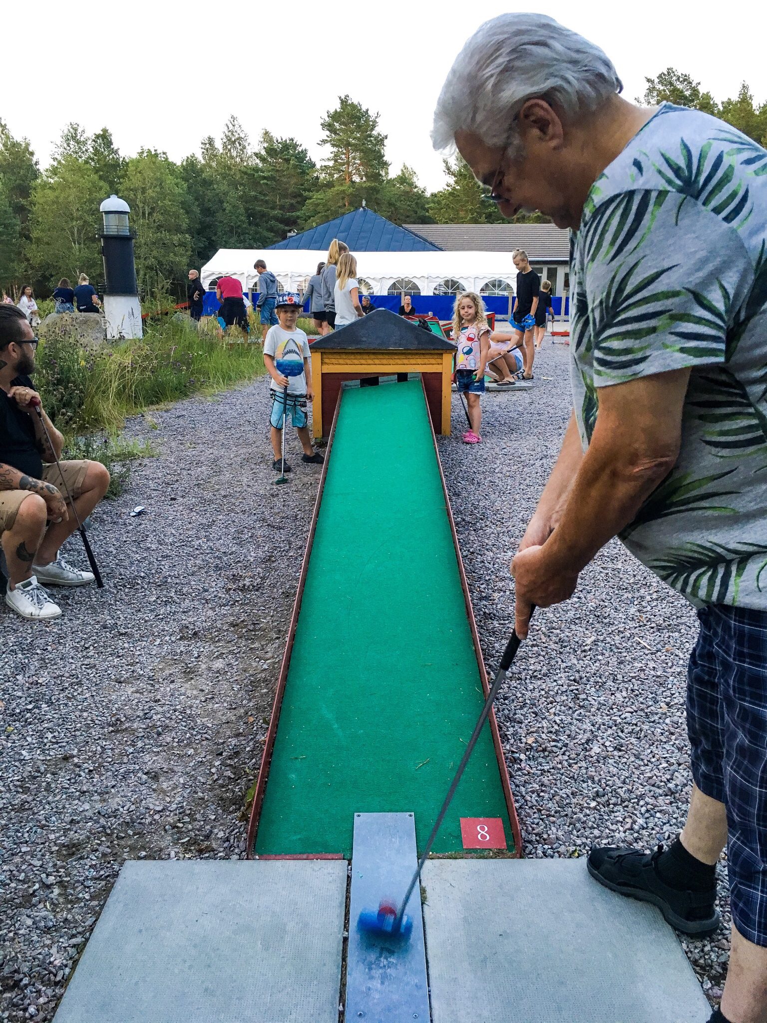 Mysigt kräftkalas ute på Bryggis med god mat och kubbspel. Ett perfekt kräftkalas med mysig övernattning på ön.