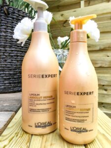 Vi börjar med håret! Hur torrt? Mitt blir som fnöske av detta klimat, dessutom mådde det ju inte toppen sedan innan så håret behöver verkligen en boost! Här är mina schampo och balsamfavoriter. Doftar ljuvligt och gör håret mjukt, lent och följsamt. Lagar trasiga och kluvna hårtoppar, tar bort frissighet och ger glans. Älskart! Just nu är det 60% rabatt på ett schampo och balsampaket! (<-länk) Båda flaskorna är lika stora som den till vänster i bild.