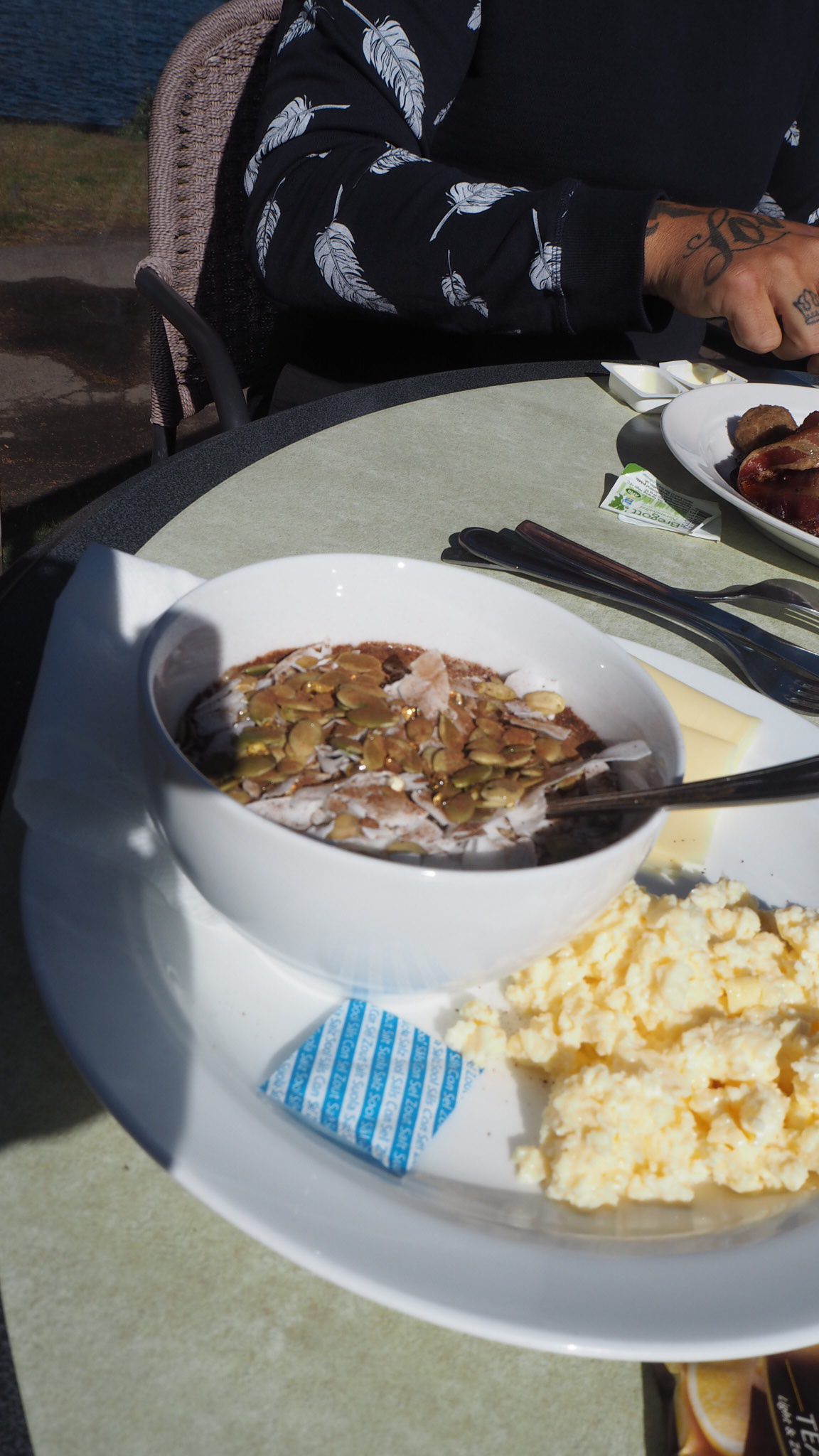 Vi startade med frukost på Leksand Strand. Vi satt verkligen precis vid vattnet och bara mös. Solen gassade från klarblå himmel så det blev ju fetaste bonusen för oss det.