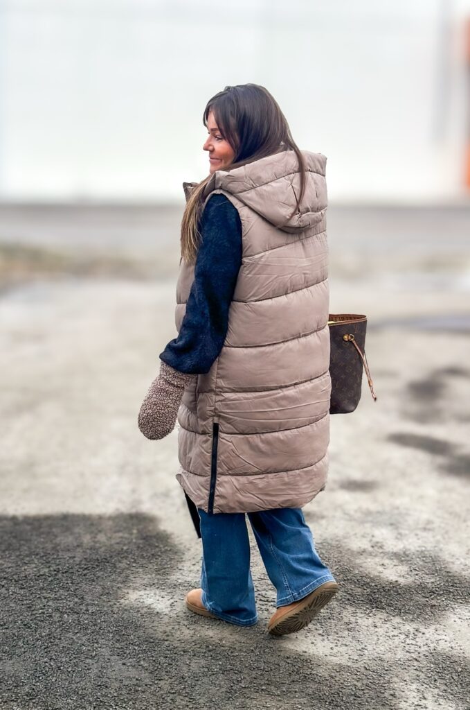 På väg till affären i min nya fluffiga väst som jag vet att jag kommer använda massor, när takdroppet är här så är det jag som kommer ha den här i vått och torrt. Så bra pris just nu! Jeansen var ni många som klickade hem när jag tipsade på Instagram, och koftan hörni…. Mjukaste jag haft! 😍