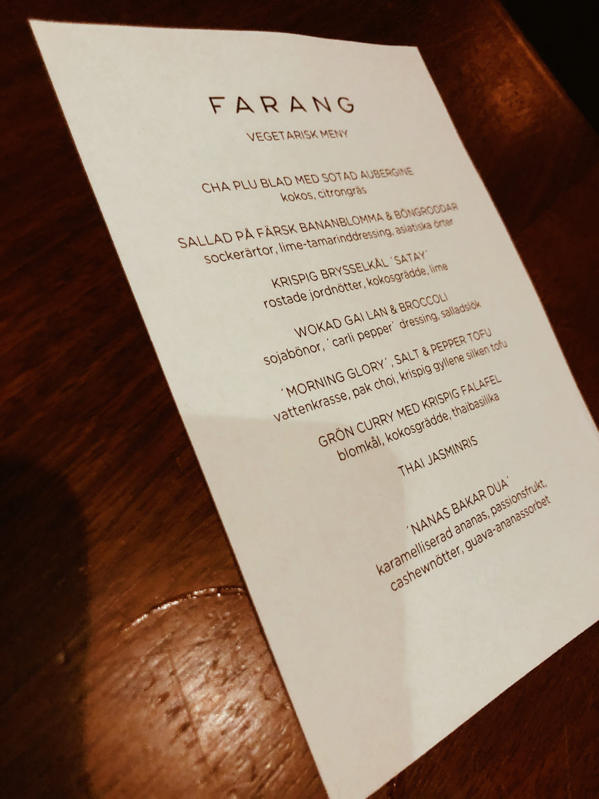 Jag bokade bord åt oss och våra vänner på Farang. Wow säger jag bara vilken restaurang, det är bland det godaste jag ätit alltså. Hade hört väldigt mycket gott om det men aldrig varit där själv. Kan verkligen tipsa er om att gå dit. Vi åt så magen stod i alla fyra hörn, ja men en fantastisk upplevelse. Jag och Cia valde Vegetariska avsmakningsmenyn och Tony och Micke valde Farangs avsmakningsmeny. Så mycket rätter och så mycket gott!