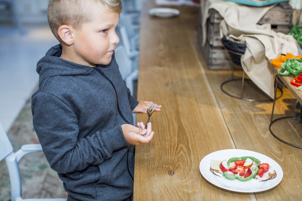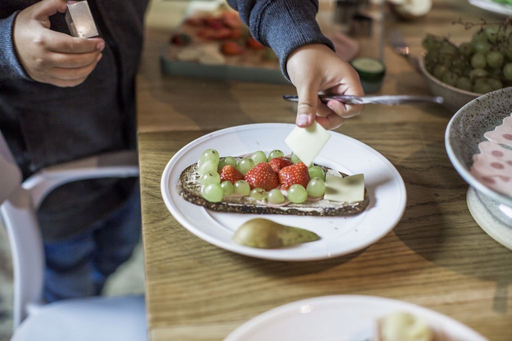 Milo tillverkade en superhärlig macka med nallekorv och massa härliga färgglada grönsaker. Han gjorde också en med vindruvor och jordgubbar som såg supersmaskig ut. Det är mycket kreativitet i honom precis som mamma.
