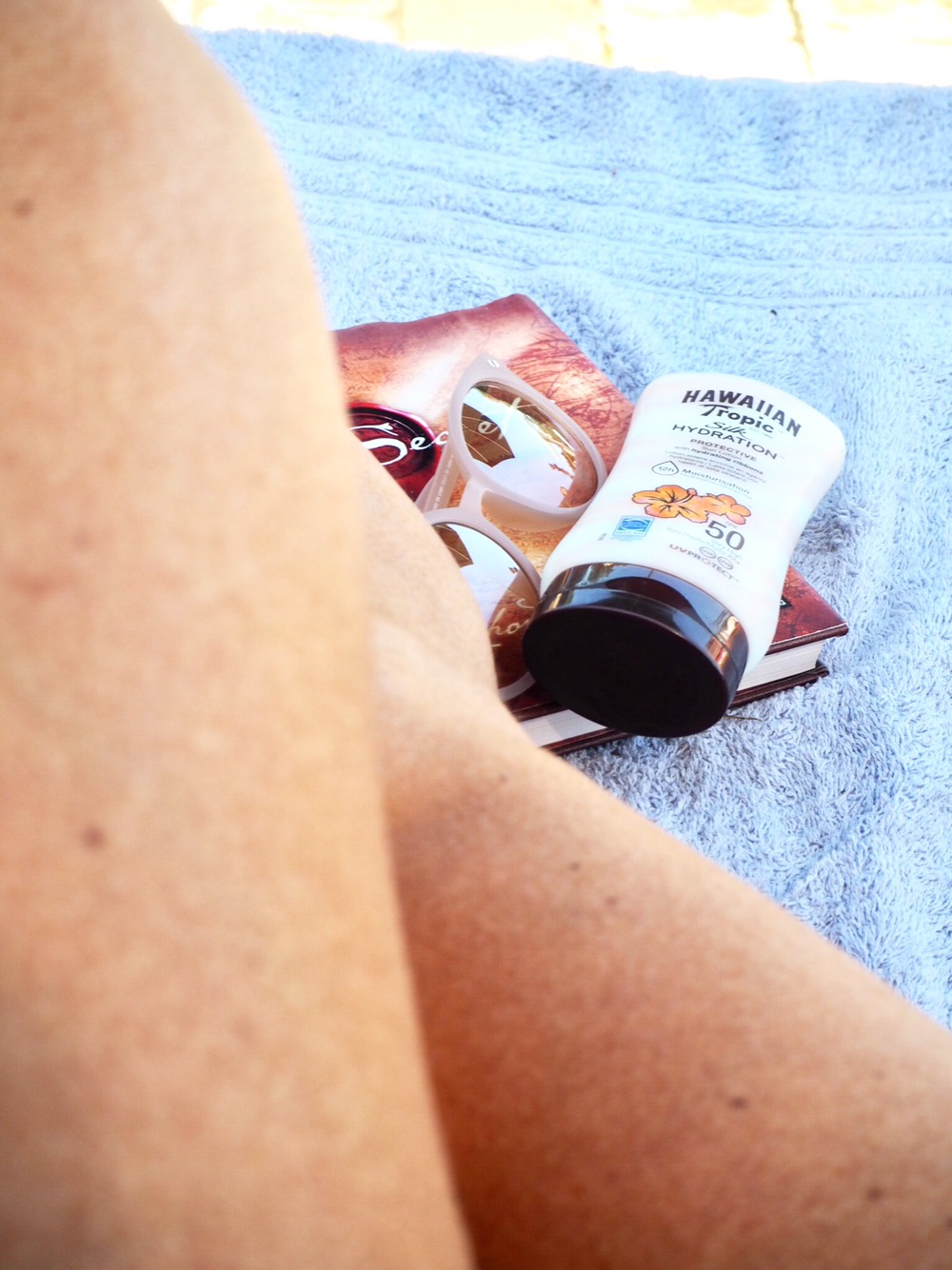Idag ligger vi vid vattenlandet här och njuter. T.o.m jag visar mig lite för solen, men aldrig så att jag ligger och solar. Sen har jag alltid solskyddsfaktor på mig. Har hittat en ny favvo!