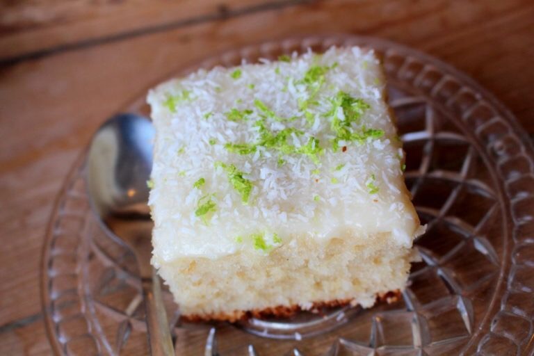 6) Grädda på 200 grader i ugnen i ca 20-25 min. Kakan ska vara helt torr rakt igenom. Pudra över florsocker och skär upp den i rutor.