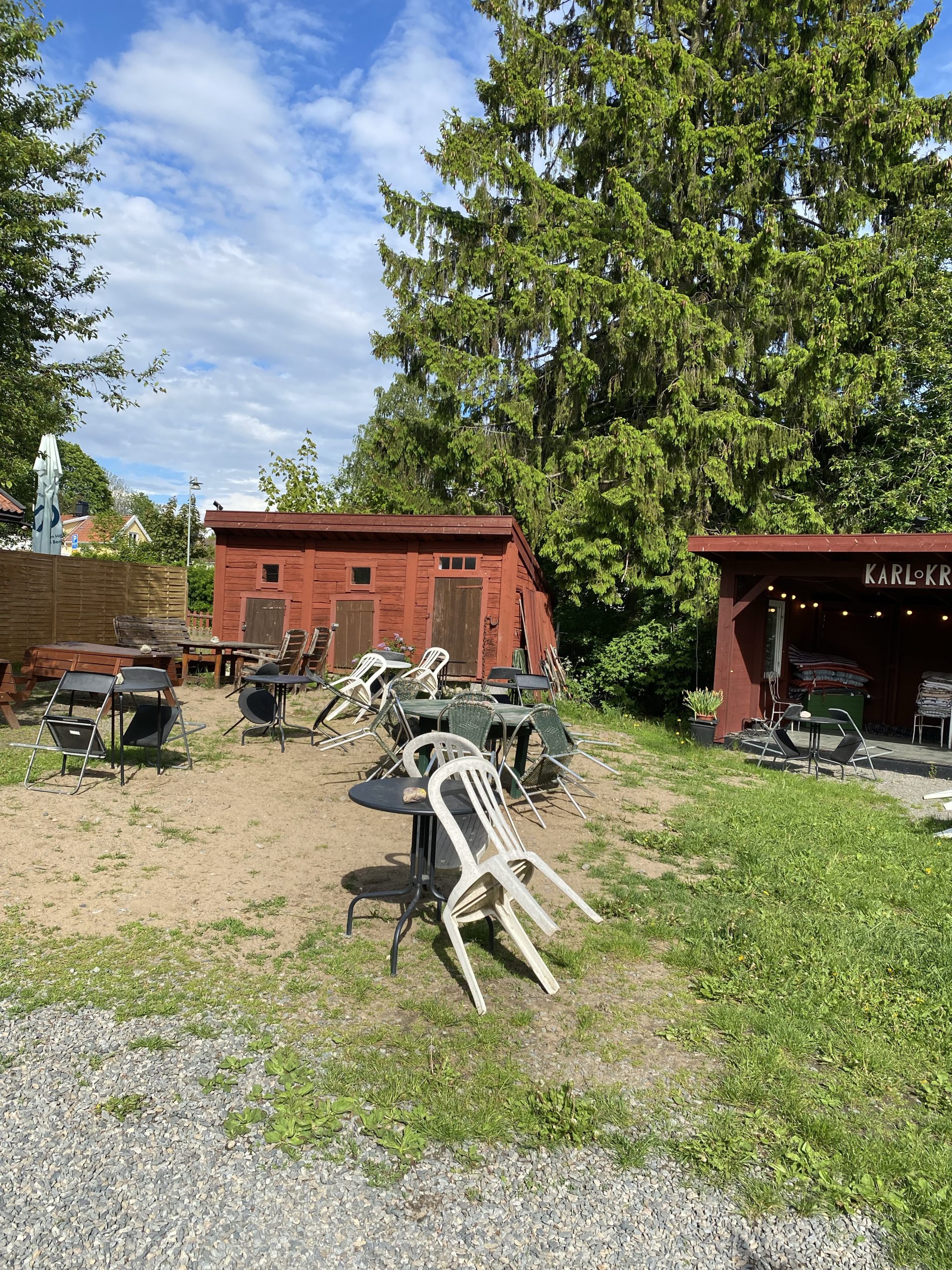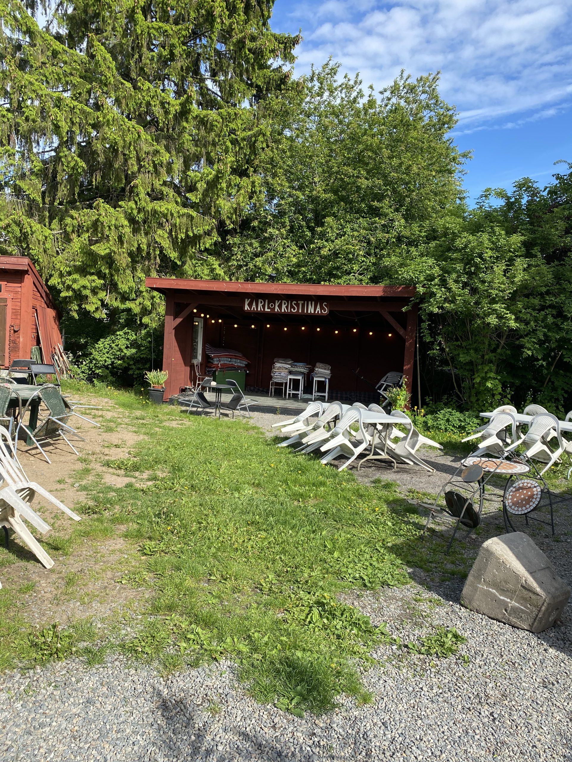 Minnesstunden efteråt var på Karl & Kristinas. Vilket mysigt ställe alltså, det var verkligen allt annat än stelt. Det låg så fint och lummigt. På vägen dit åkte man igenom hela Skogskyrkogården. Så oerhört vackert det ligger alltså, begravningsplatsen ser ut att vara i en skog med massor av träd. Så magiskt vackert på något vis.