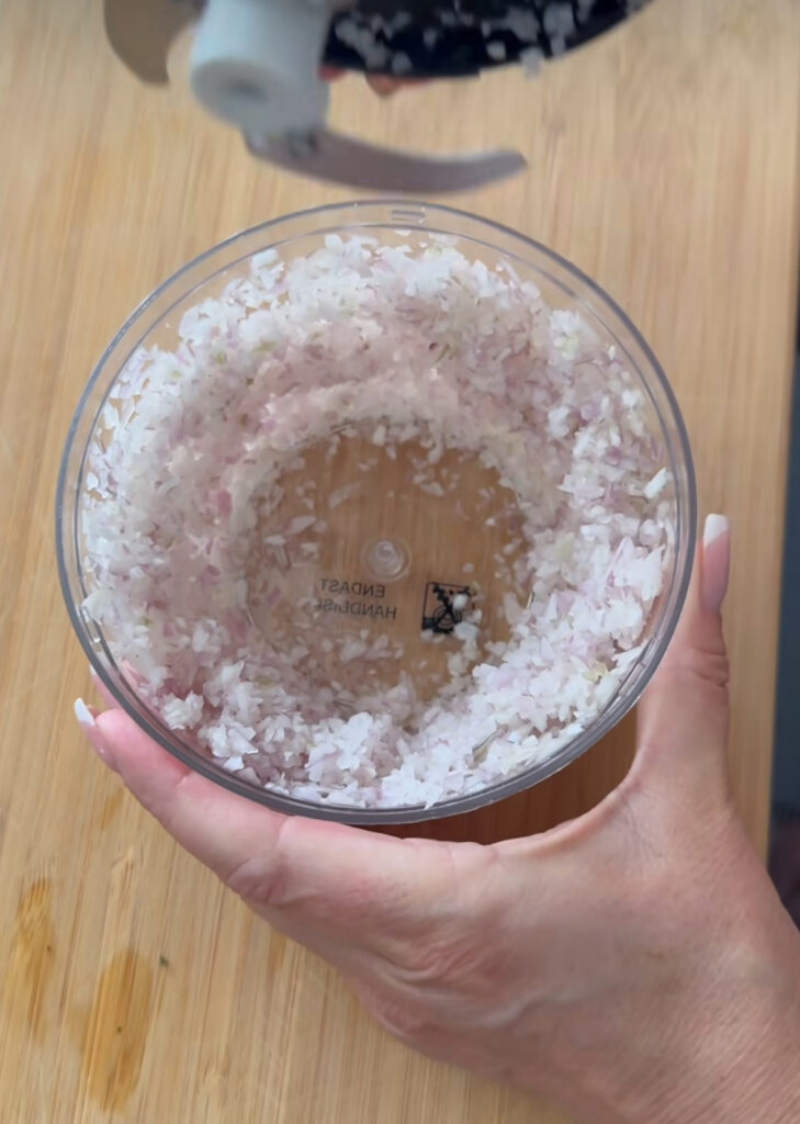 Den här har jag, klicka HÄR. Såå bra är den. Med bara ett par ryck så har jag minimala bitar av lök, kör du ännu längre blir det nästan som ett lök-mos. Denna är ju en fördel också då man slipper tårar när man hackar löken. Sen kan du ju hacka alla grönsaker till tacosen i den också. Vi använder vår massor. Lätt att diska och skölja av med.