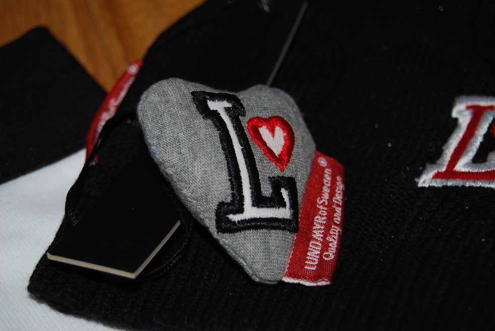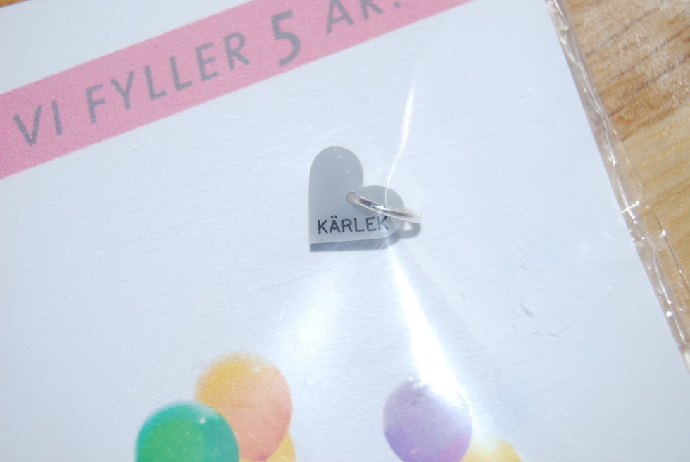 Lundmyr har en så fin detalj på vissa av sina produkter. Ett stort grått hjärta med bokstaven L på. Denna kan vara fin att hänga i lilla vagnen t ex.