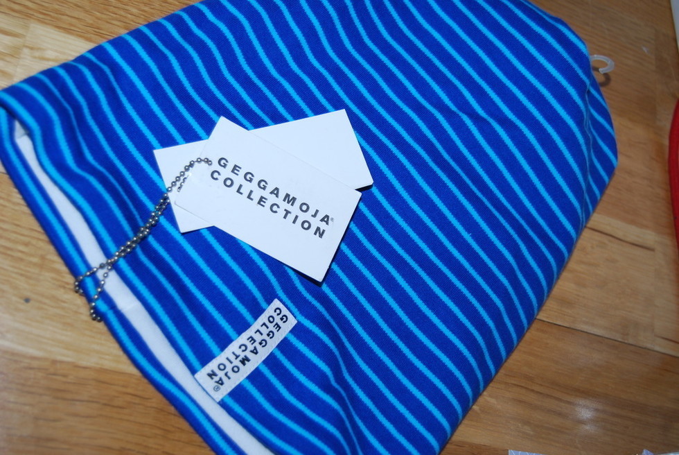 Nu köpte jag den där GEGGAMOJA mössan till Milo som jag planerat till Didrikson overallen. Det lustiga var att det blev finast med den större mössan. Den som heter M i deras kollektion. Då sitter den lite pösigt uppepå huvudet som jag tycker är så fint.