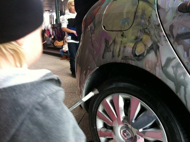 Där fanns en bil som man fick måla på. Milo fixade det inte. Han ÄLSKAR ju bilar och MÅLA på dom var nog emot alla hans värderingar. 😉