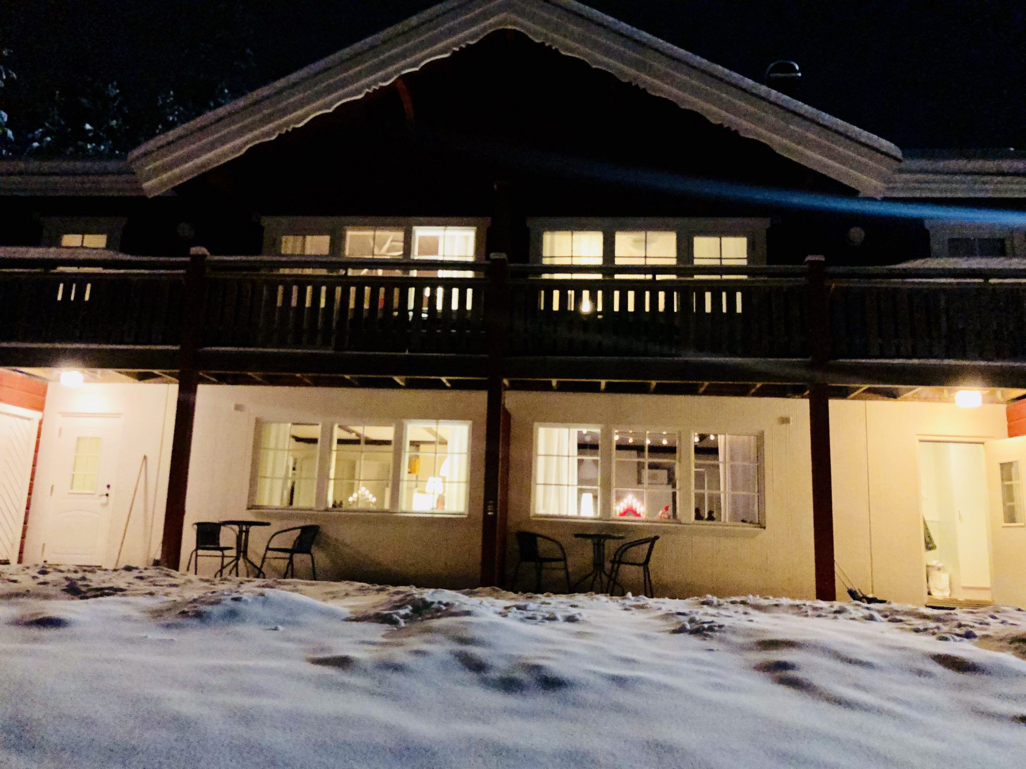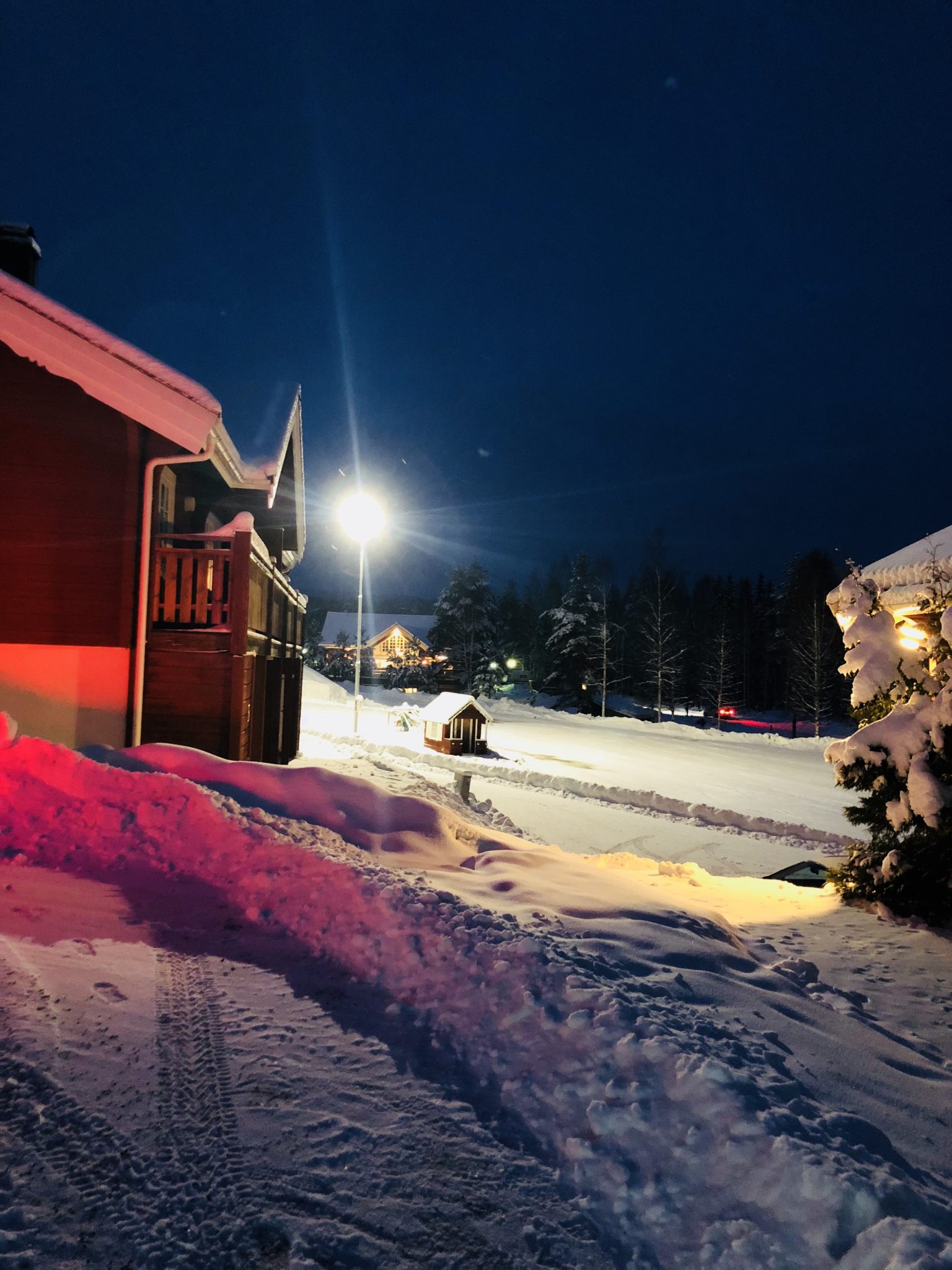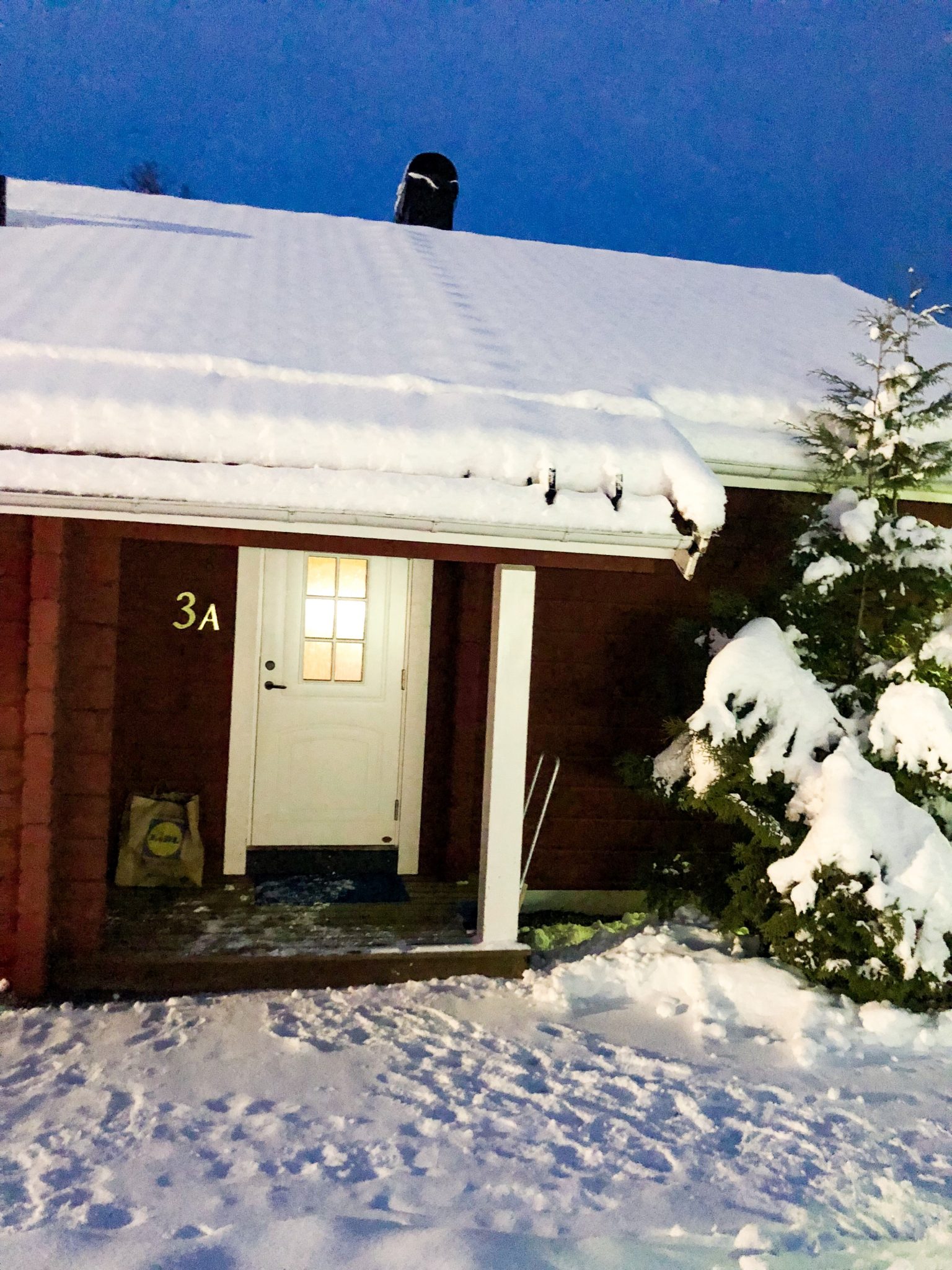 Vår stuga är magisk! Kolla bara! Ligger max 100 meter från backen och är här är det full vinter. Platsen påminner om en by i alperna på något sätt. Vi bara älskar det alltså!