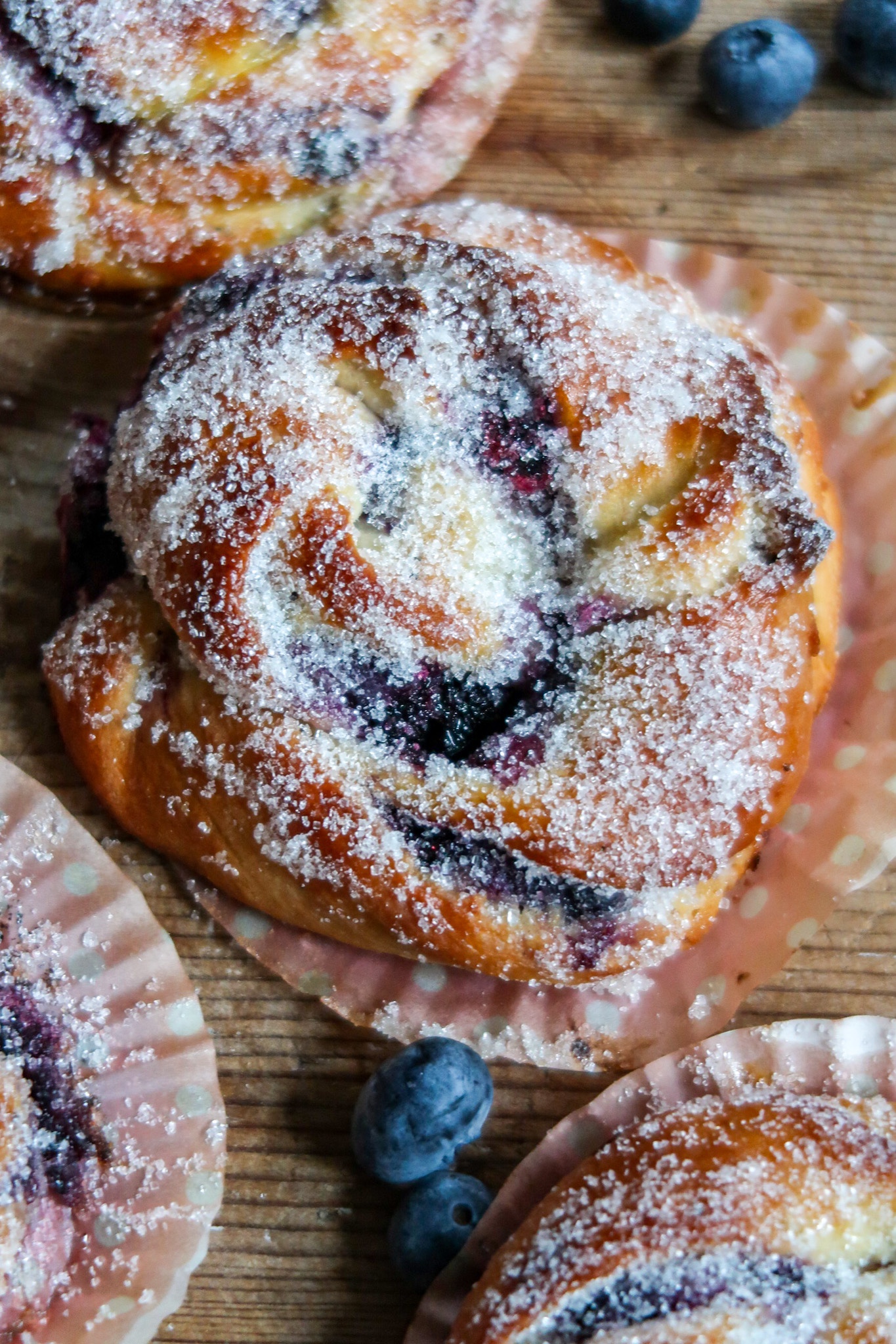 Att rulla bullar i strösocker istället för pärlsocker kan ju vara så himla gott. Då blir hela bullen täckt av socker och ger smak åt överallt. Så gott! De syrliga blåbären med mandelmassa och strösocker, ja då har du en himmelsk bulle att njuta av.