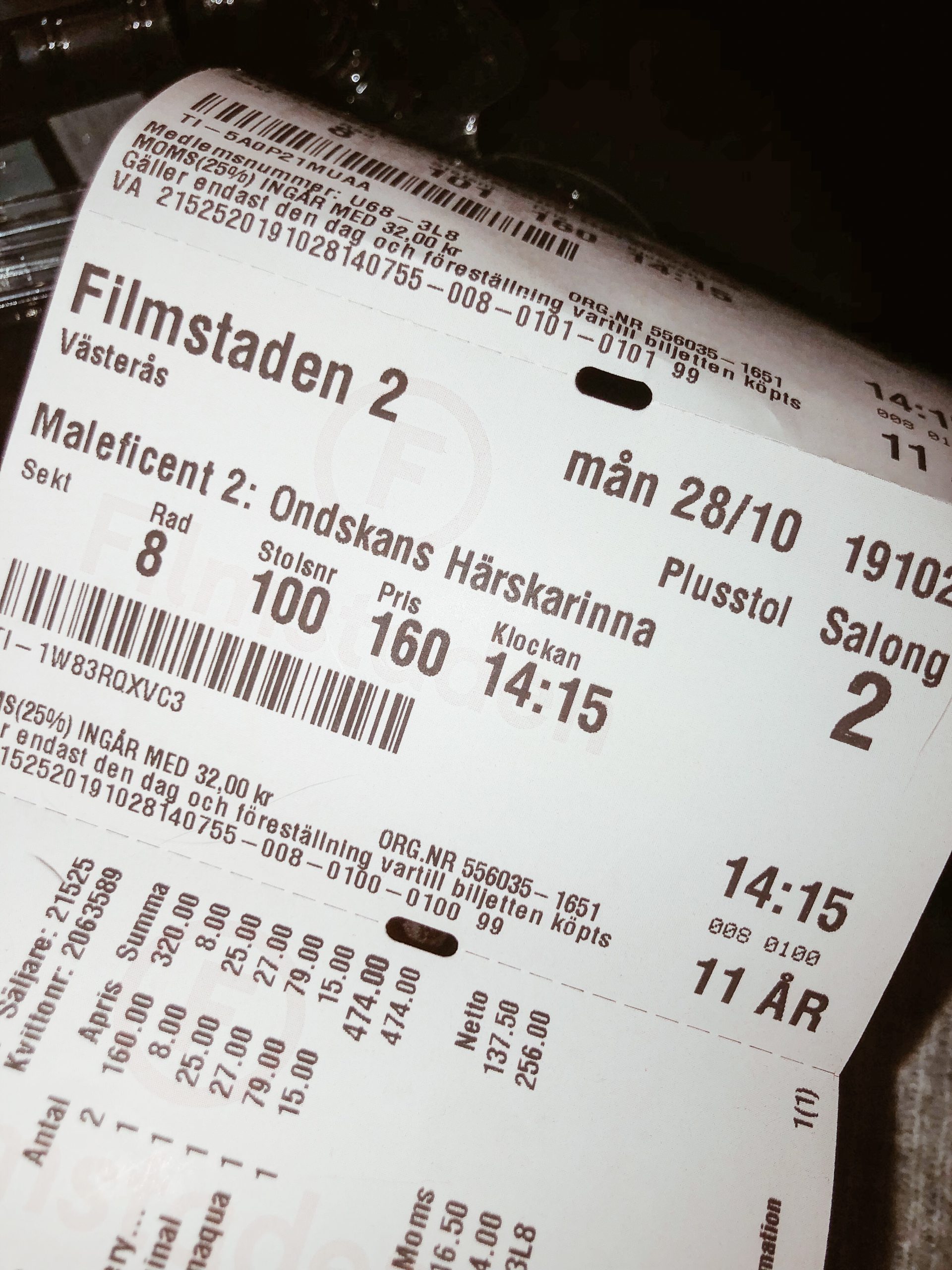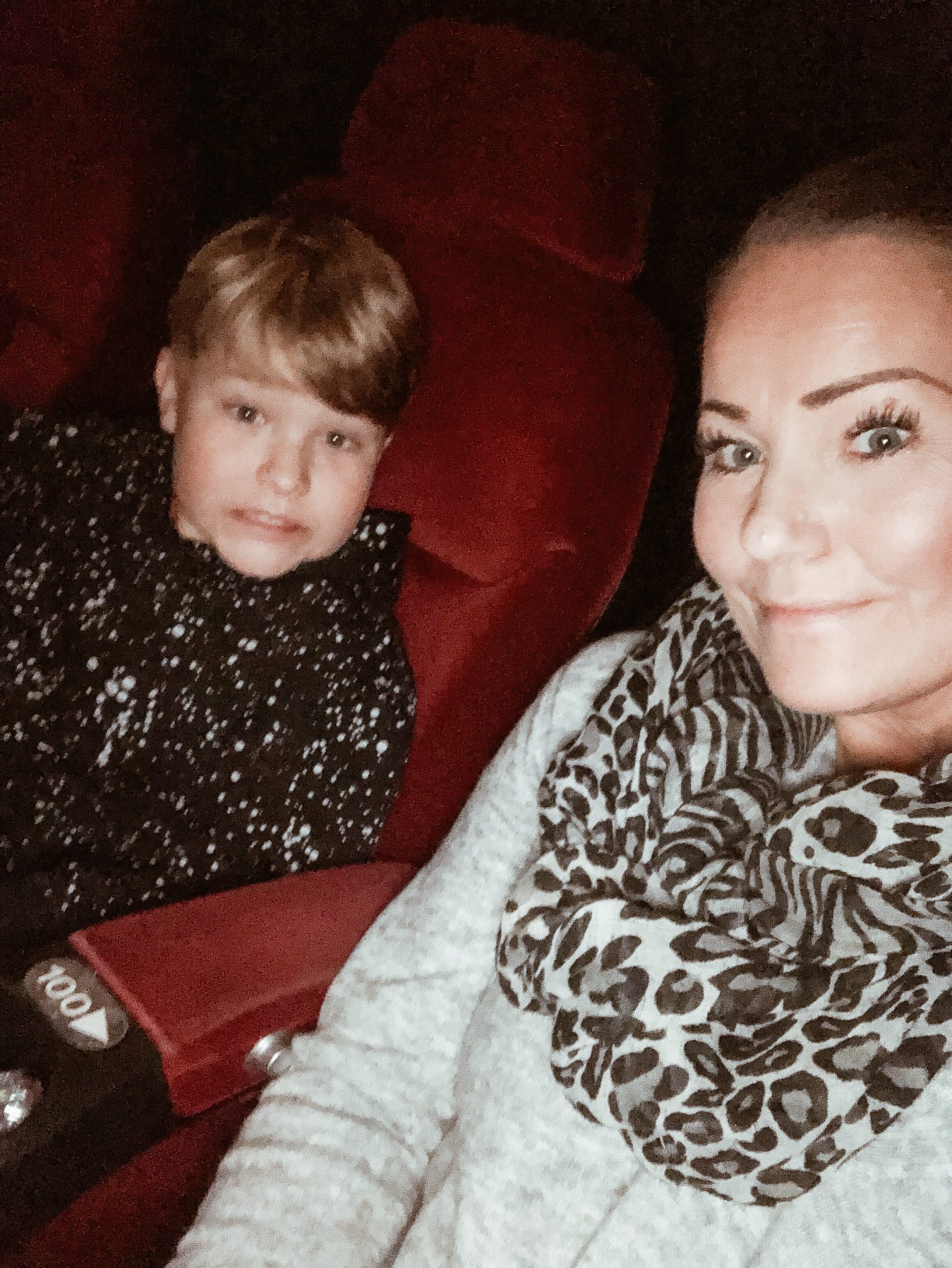 Vi ser ut som två skrämda fåglar inne på bion. Vi valde plusstolar. Ämen hörni, hur skönt?! Jag halvlåg filmen igenom.