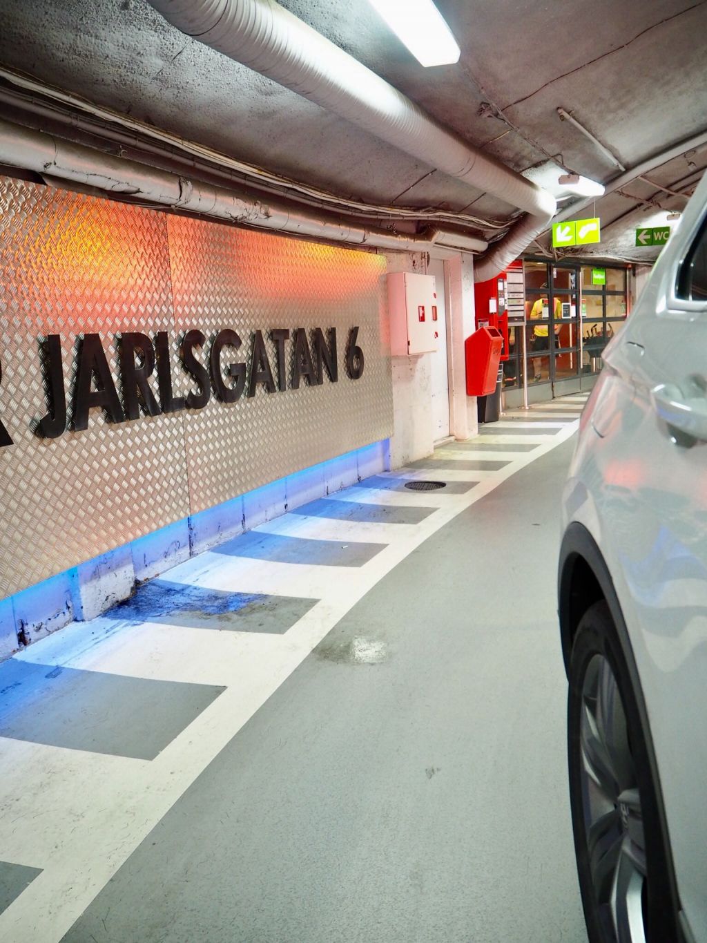 Kan man tipsa om ett parkeringsgarage utan att bli dumförklarad? Alltså – ska ni parkera mitt i smeten tipsar jag om Birger Jarlsgatan 6. Man tror inte att det ligger ett garage där just det här ligger men det kan helt ärligt vara värt att leta upp. Först så doftar det sådär vansinnigt gott inne i det. När man kommer ned så står där en personal och lotsar en rätt, när man kommer ännu lite längre in så står där ytterligare en och lotsar en till en plats. Där finns också dubbelparkering så när vi kom tillbaka så var det en bil som stod precis bakom oss. Där fanns direkt personal för att hjälpa oss bort med bilen – dessutom en så sjukt trevlig man. ”Trevlig helg” ropade han efter oss! Beundransvärt – heja Q-park! Det där har ni gjort riktigt jäkla bra. Hoppas verkligen att ni uppskattar er personal som gör ett fantastiskt bra jobb därnere! Hoppas någon bemödar sig med att kvista dit med en flaska fint rödtjut som uppskattning ibland. Jag ska fasen mejla till Q-park och länka mitt inlägg till dem. Det ska jag göra! Får se om de svarar?