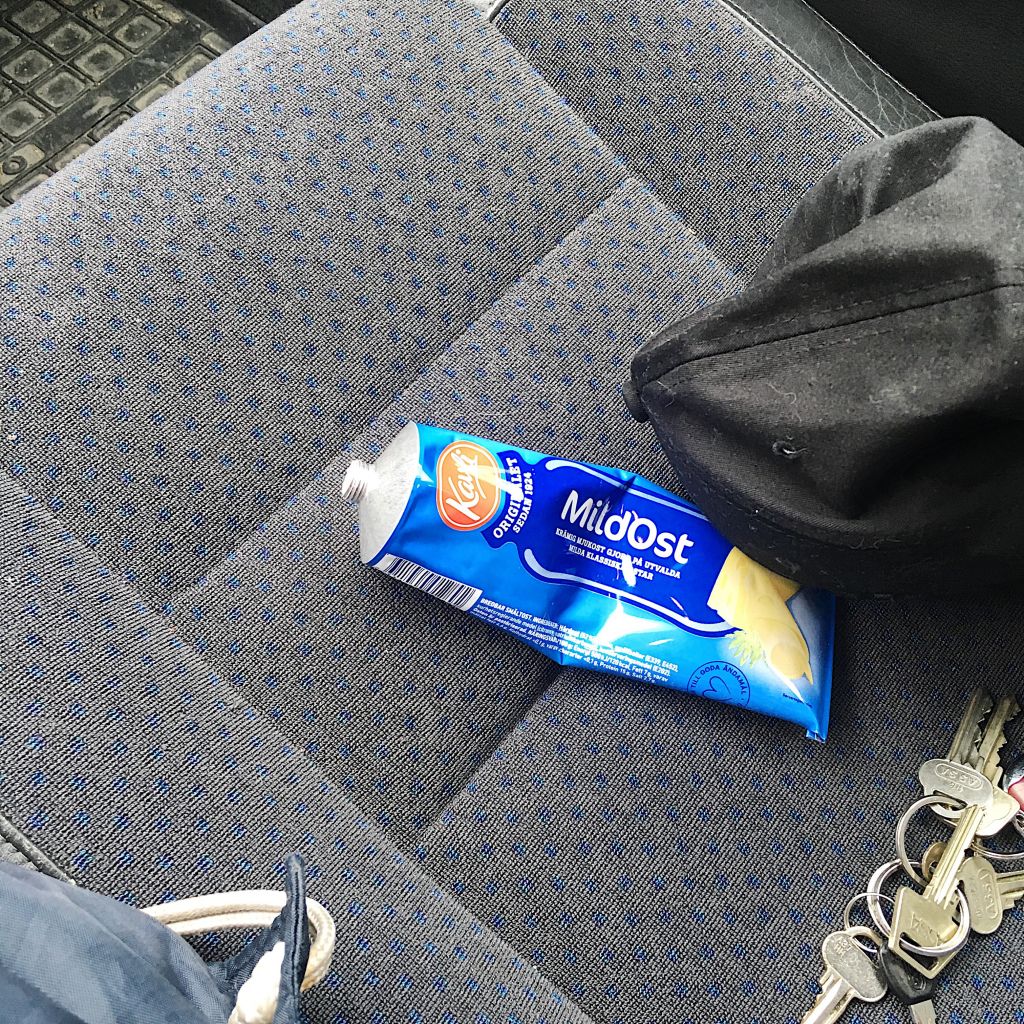 Satt i bilen och gjorde mjukost mackor och önskade att ingen skulle parkera precis bredvid. Tursamt nog så hann jag glömma bilnycklarna i affären också. I korgen. SNARK! Sprang in igen och någon vänlig själ hade hittat dem och lagt dem i kassan. Tillbaka till bilen och snabbt till skolan igen med en full matsäck.