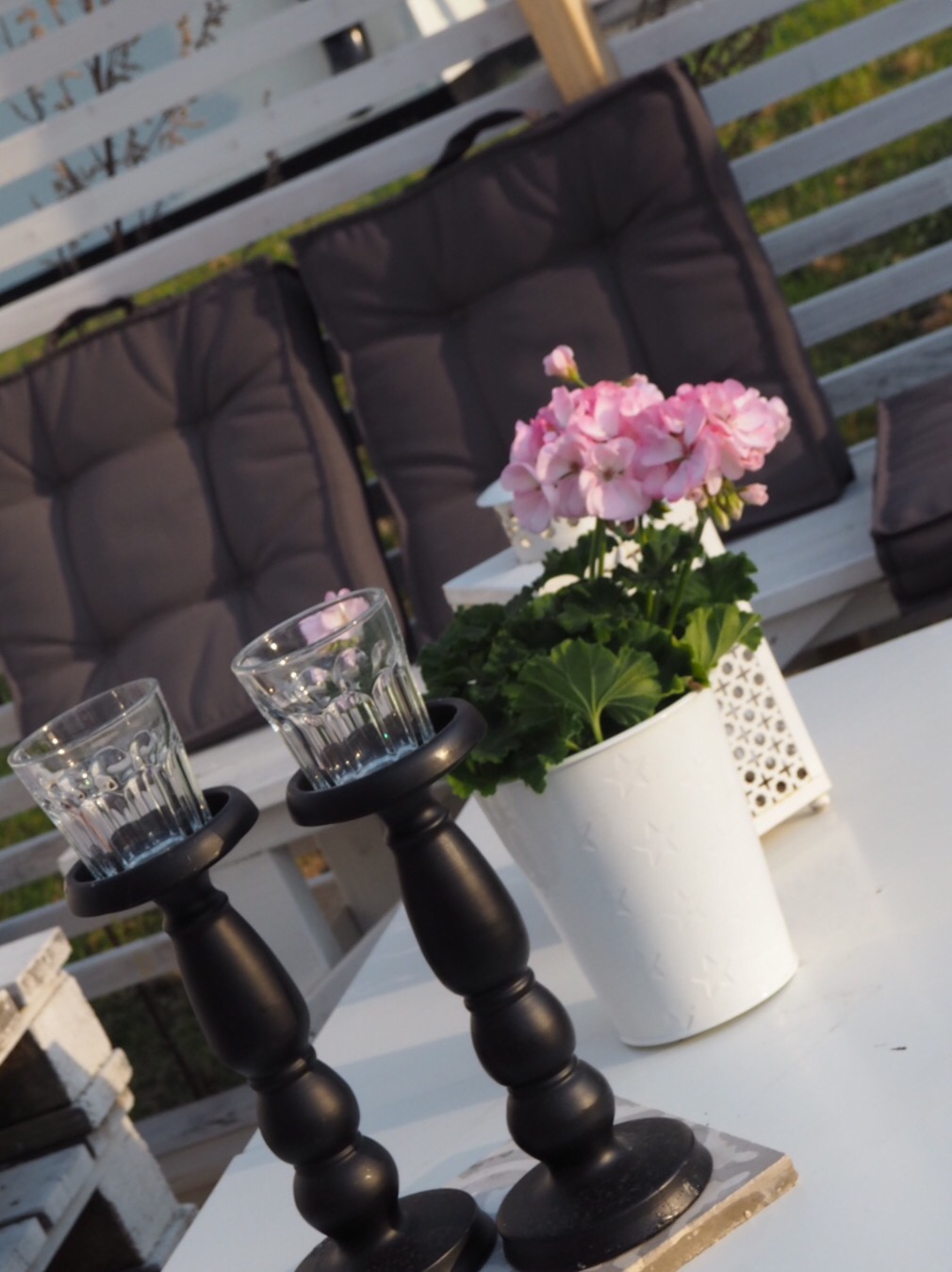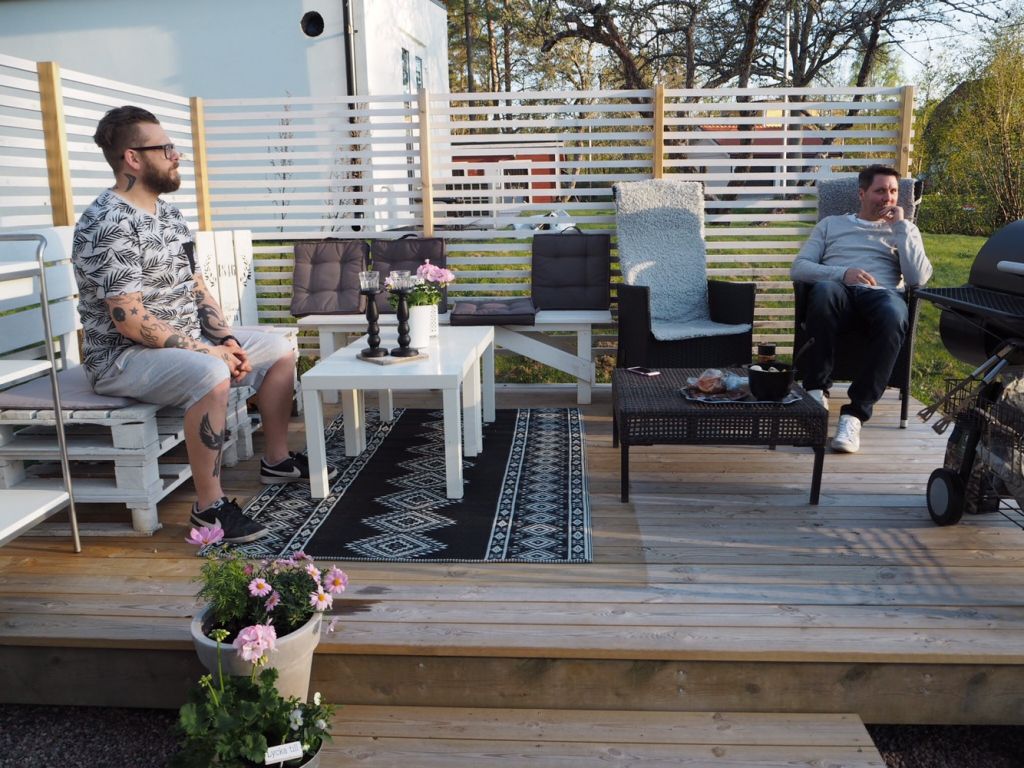 Provisoriska bord på altanen för tillfället. Det ska vi lösa med nya plankor till bordet vi hade förra året. De plankorna tog vi ju in i köket nämligen.
