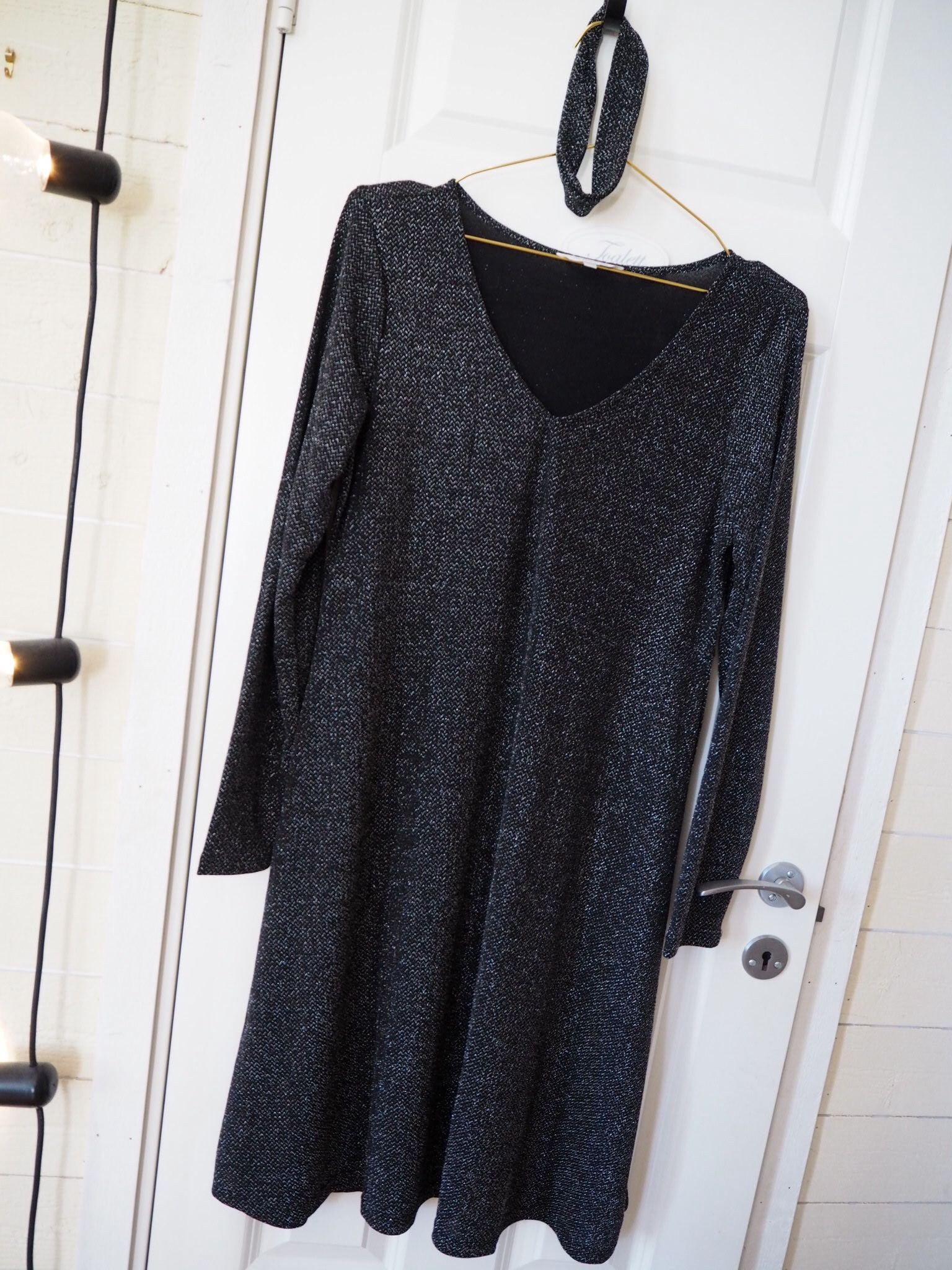 En silverglittrig partyklänning från Happy Holly. Aldrig använd tyvärr. Följer med en halsdekorarion till klänningen.