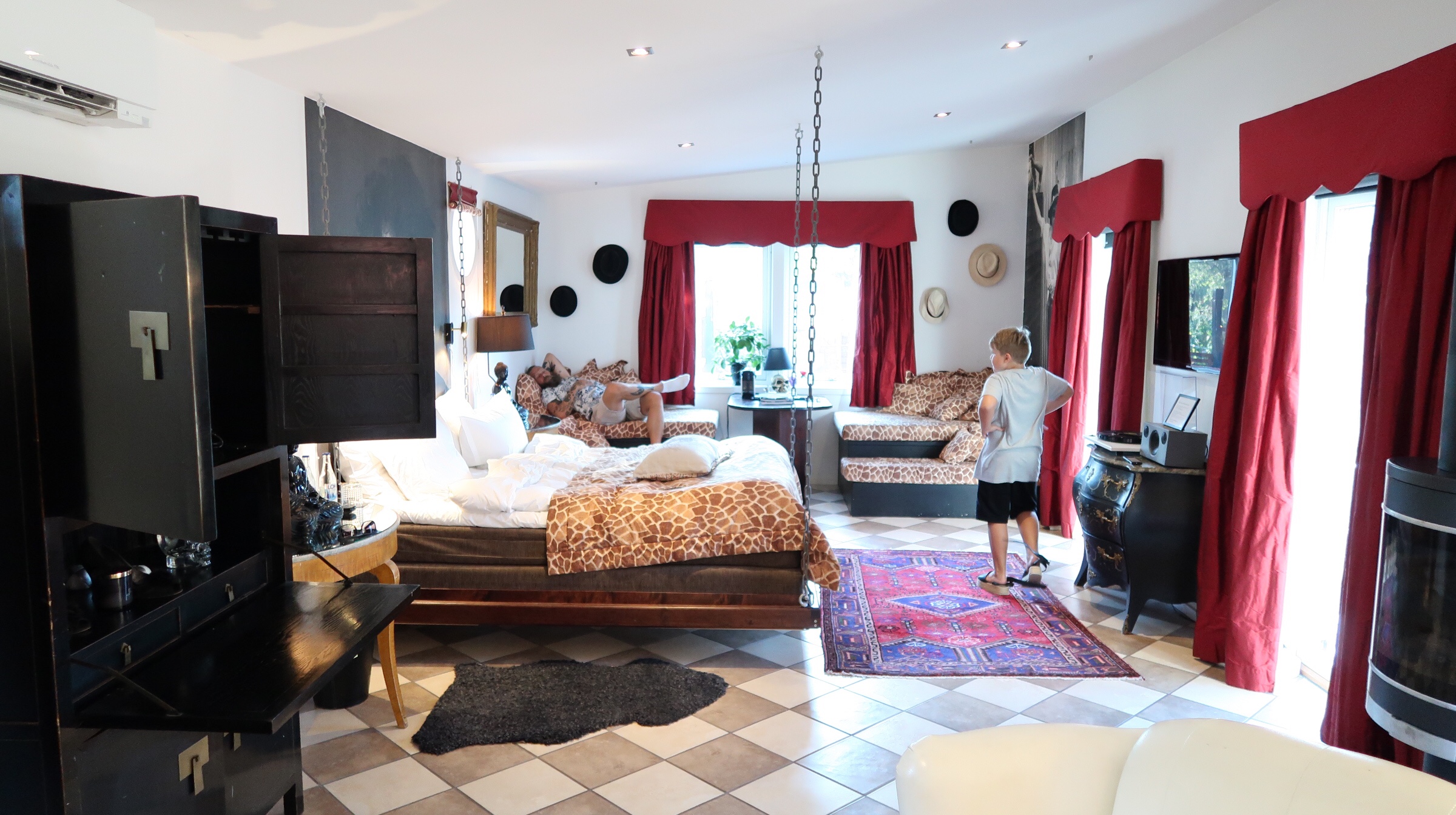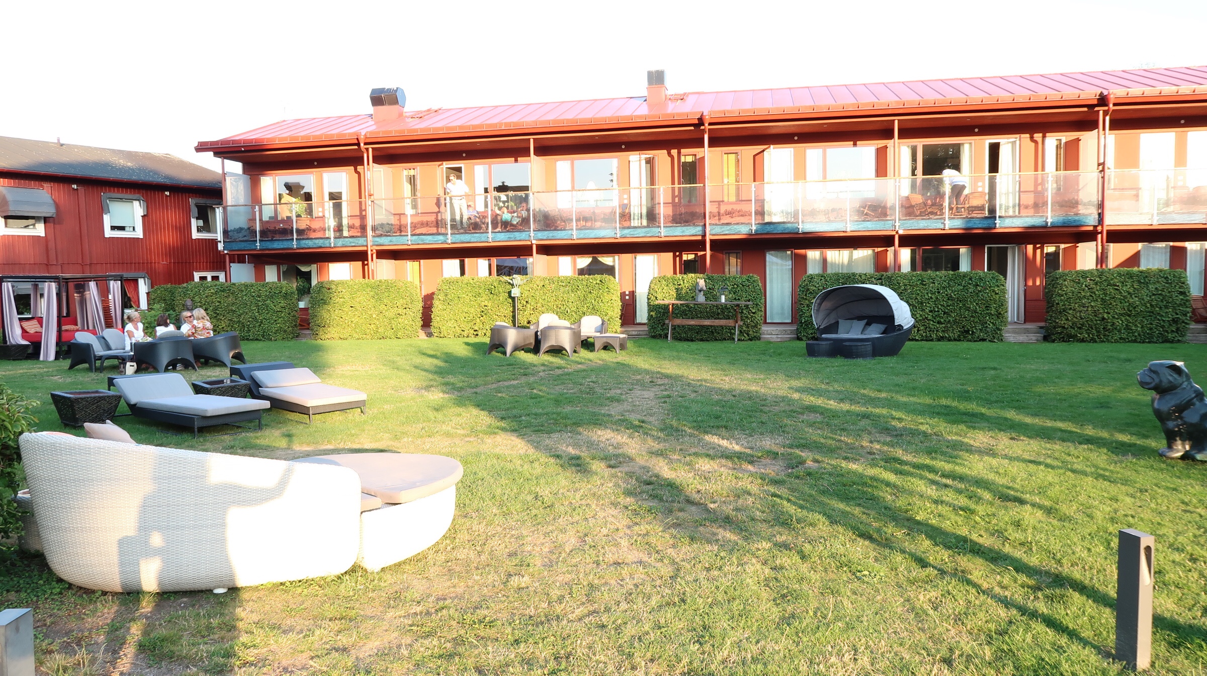 Vi hade en egen terass och bodde faktiskt i ett helt eget hus på gården! Rummet heter Glimmertwin ifall du vill testa nångång.