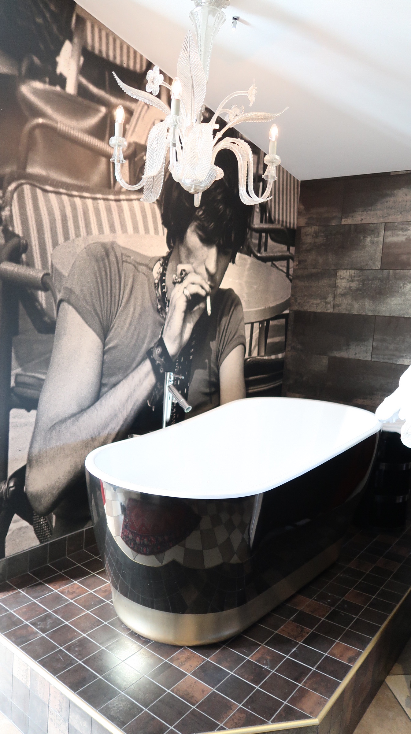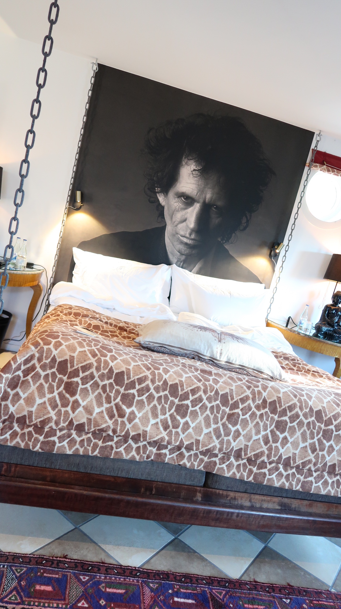 Vi bodde i Keith Richards rum kan man säga för han var överallt på väggarna. Han stod t.o.m och askade lite snyggt med i badkaret som var i rummet. Det fanns också en grammofonspelare och Rollings Stones plattor att lyssna på.
