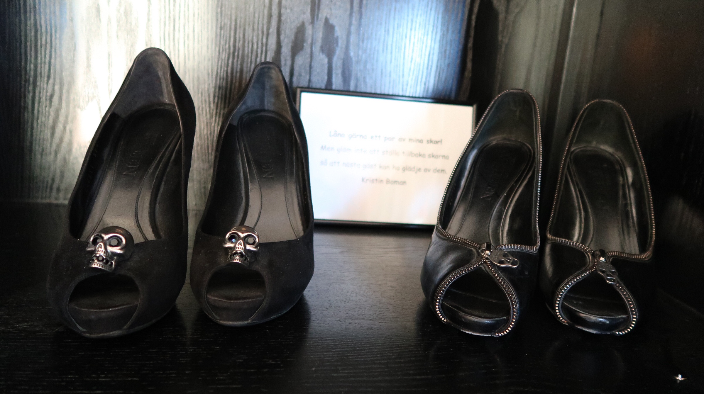 Måste visa dig det här skåpet! Överallt på hela hotellet i alla rum finns det skor man kan låna. Skorna tillhör Kristin som äger hotellet. Hon lånar ut dom gratis och det är inte vilka skor som helst. I vårt rum kunde man låna ett par Alexander MqQueen skor t ex. Hörde talas om ett Manolo Blahnik rum också. Dreglar…..