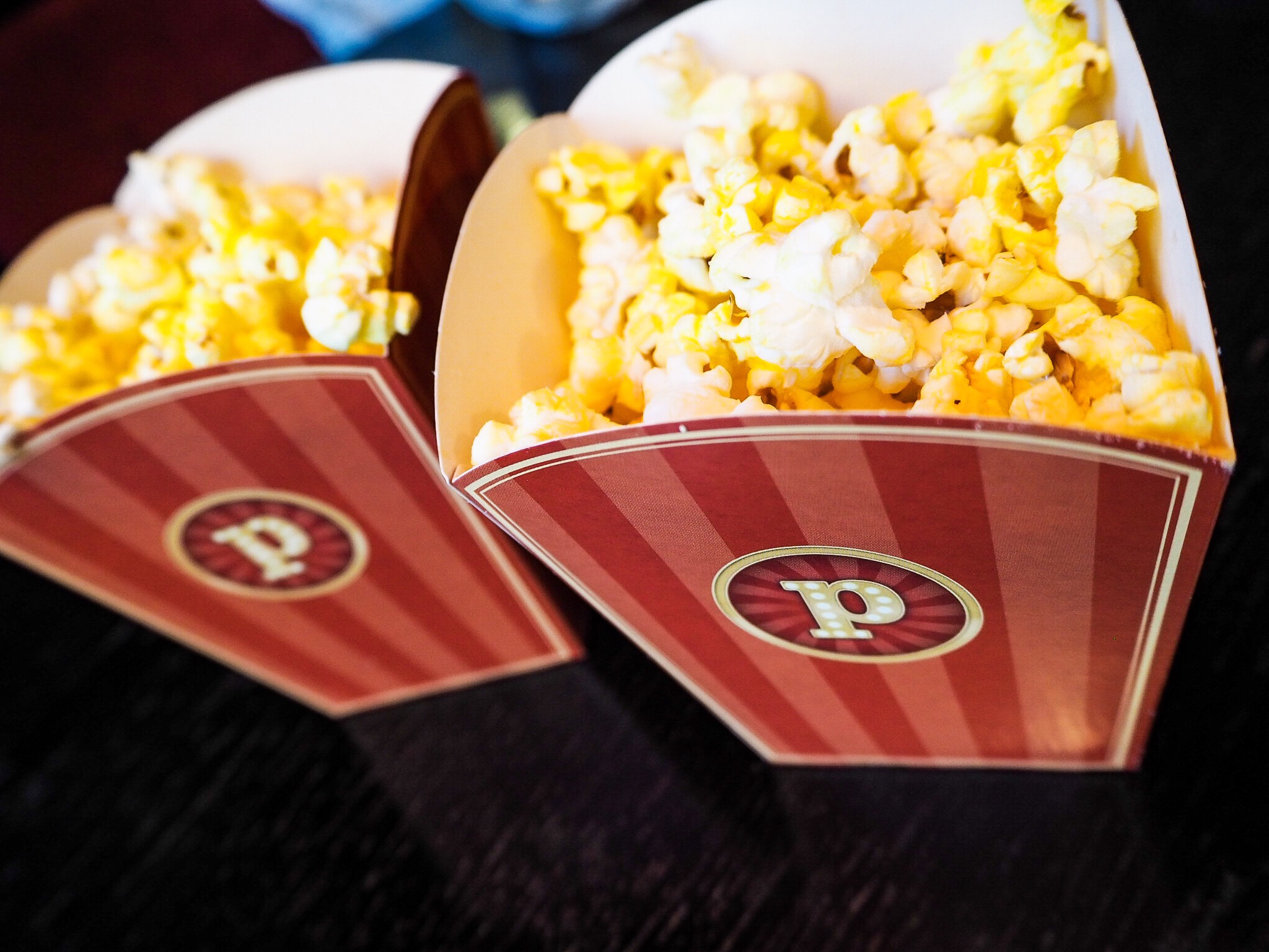 Vi älskar också att man får popcorn när man kommer. Milo slukar en bägare på nolltid. Han är verkligen galen i popcorn.