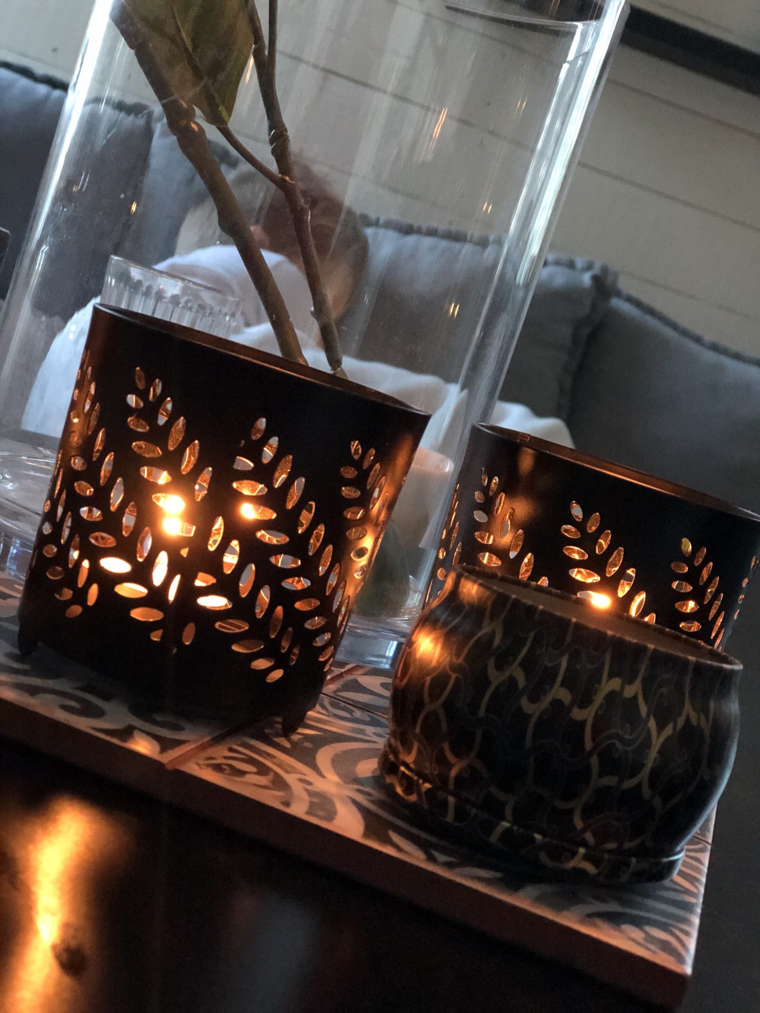 Här är det tända ljus också. Försöker värma med allt som går. Elementen kommer få sättas igång nu, golvvärmen på toa och i tvättstugan likaså. Luftvärmepumpen står och brummar för fullt.