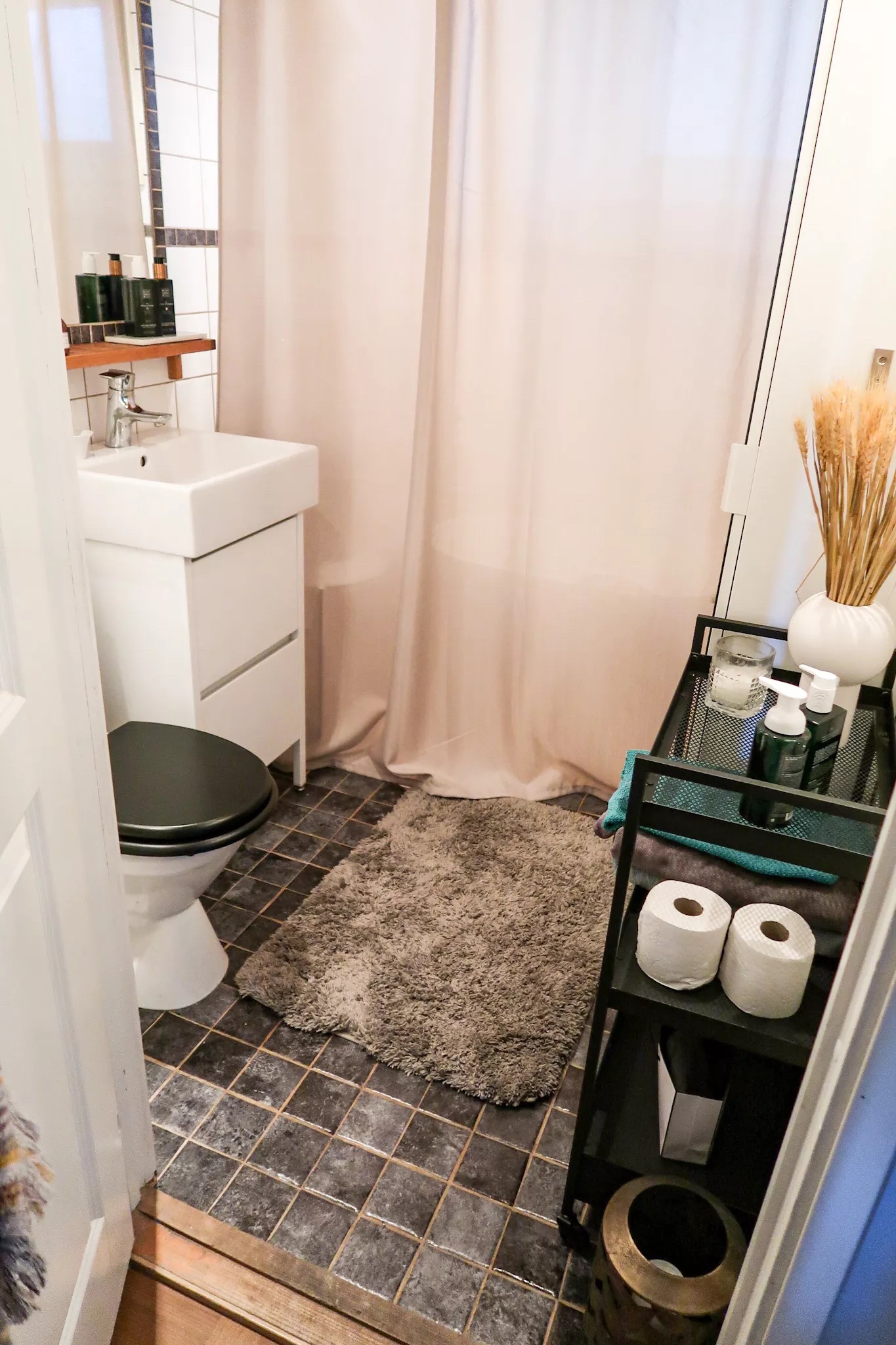 Tvättkorg HÄR // Handdukar HÄR (REA) // Duschdraperi HÄR // Badkarshylla HÄR // Rullvagn HÄR // Makeup handdukar HÄR // Badrumsmatta HÄR // Vas HÄR // Torkade växter HÄR // Rituals handtvål HÄR // Elstickan HÄR
