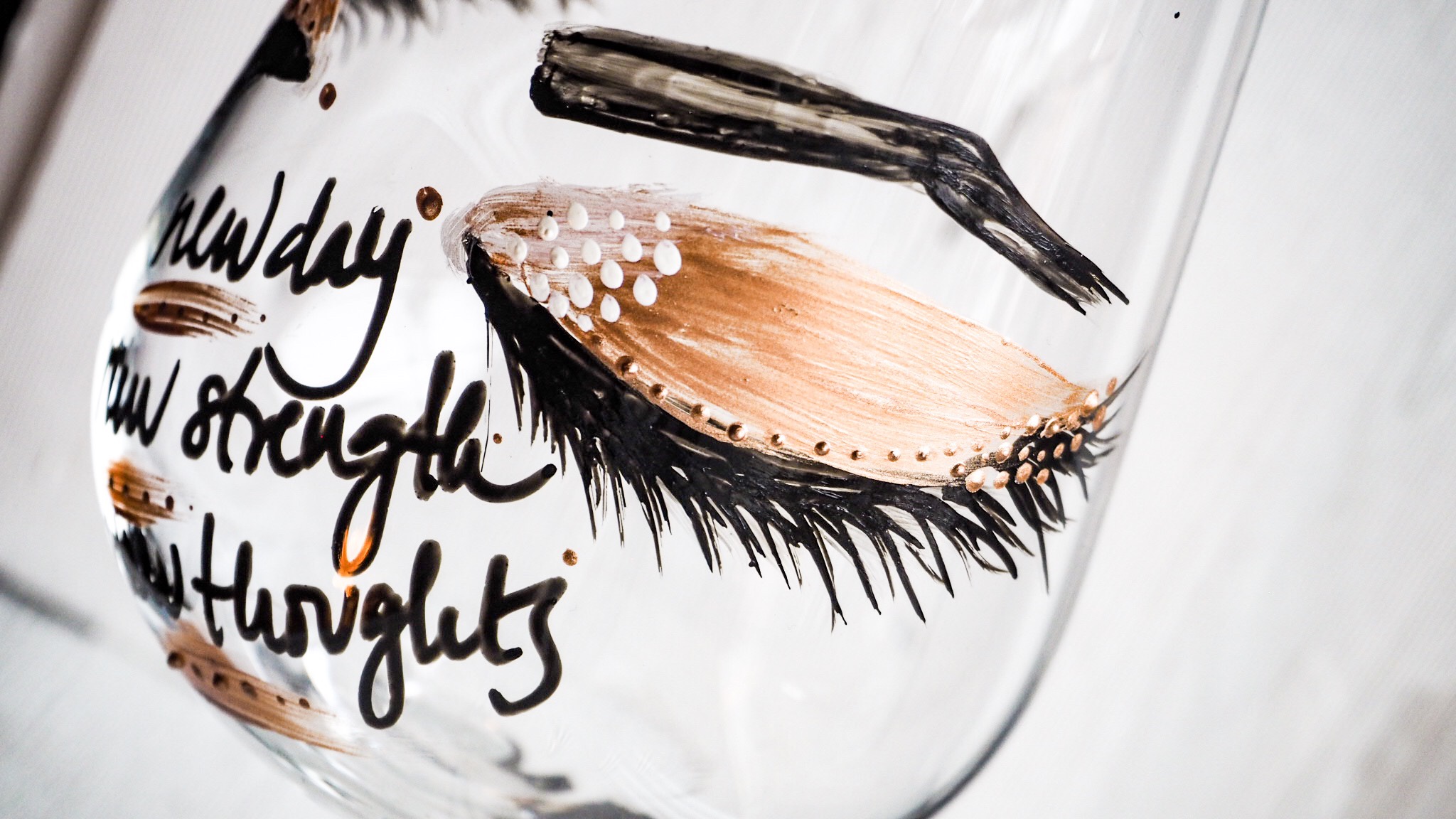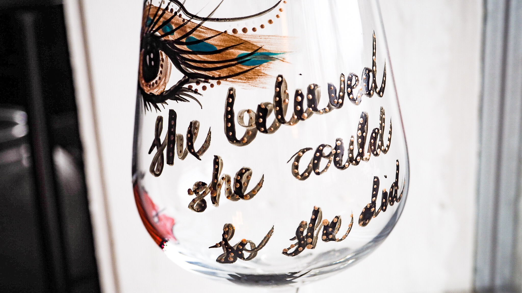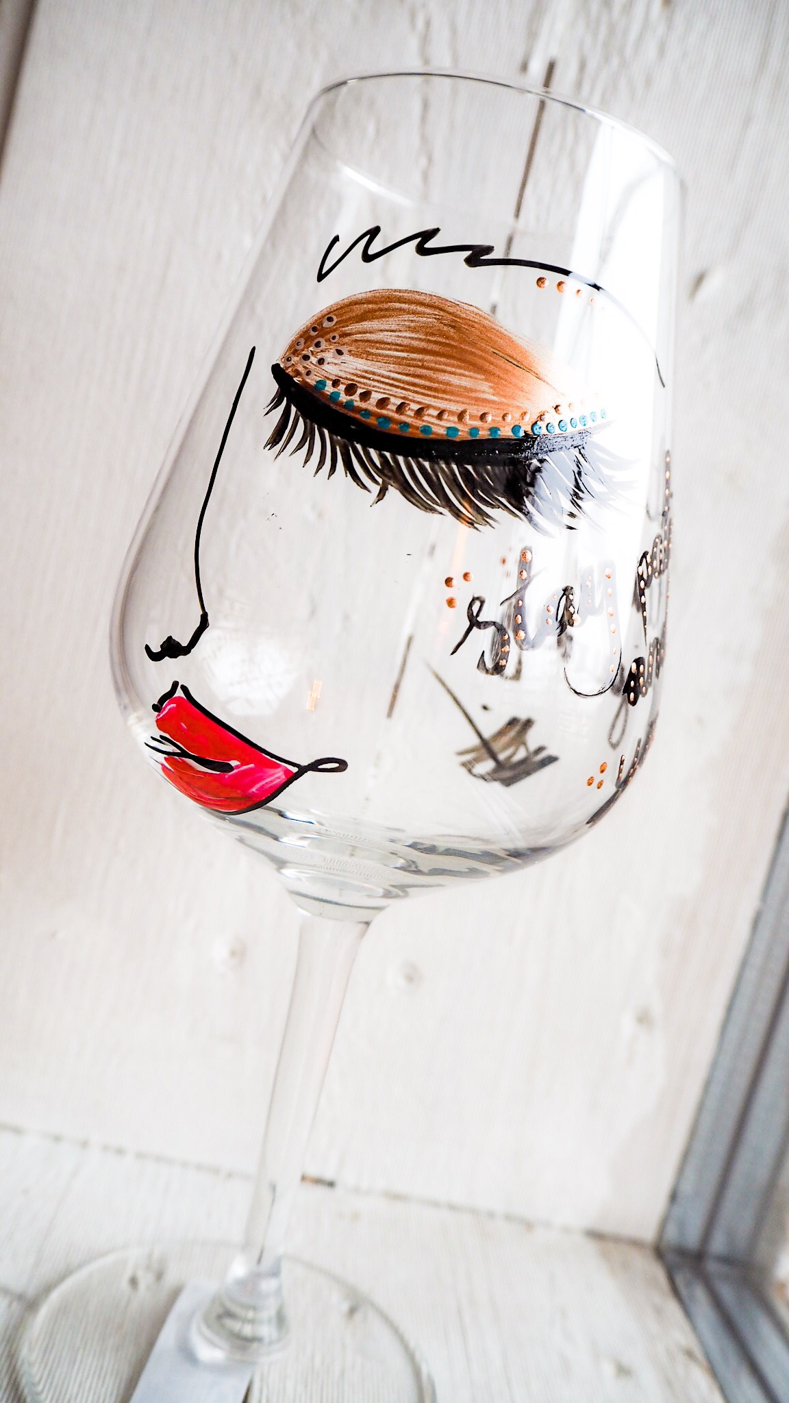 Idag har jag målat lite glas igen. Nu målar jag lite större rödvinsglas. Finns lite mer utrymme att måla på dom så jag la även till lite text i form av olika budskap.