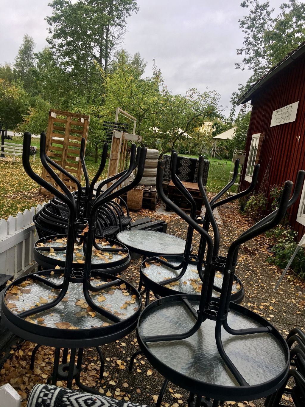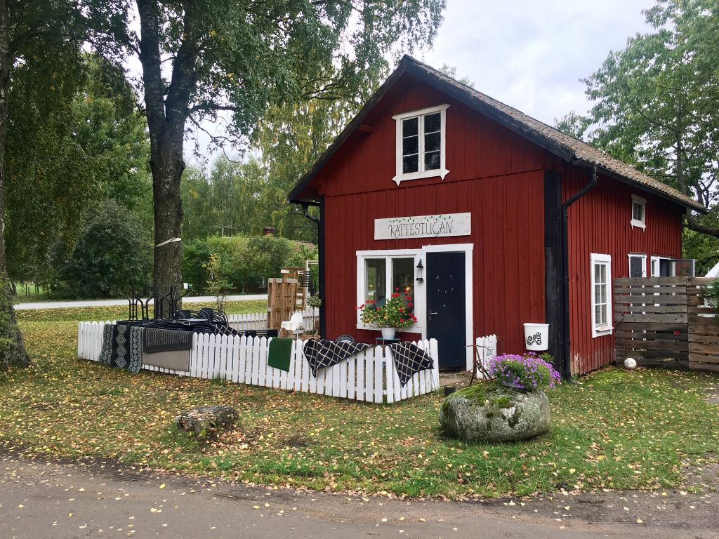 Efter vi varit på fotbollen så åkte vi ut till Kaffestugan. Vi åkte dit för att avsluta lite och städa undan på uteserveringen. Där stod hon alldeles ensam. Blev lite svag i hjärtat kände jag. Älskade fina Kaffestugan. Vi städade ur henne lite fint och så ställde vi i ordning bord och stolar. Kändes såååå dött och konstigt där ute alltså. Löven låg alldeles gula på marken och det kändes så öde och tomt. Hmm…märkligt det där. Där som det sprudlat av liv hela sommaren liksom.