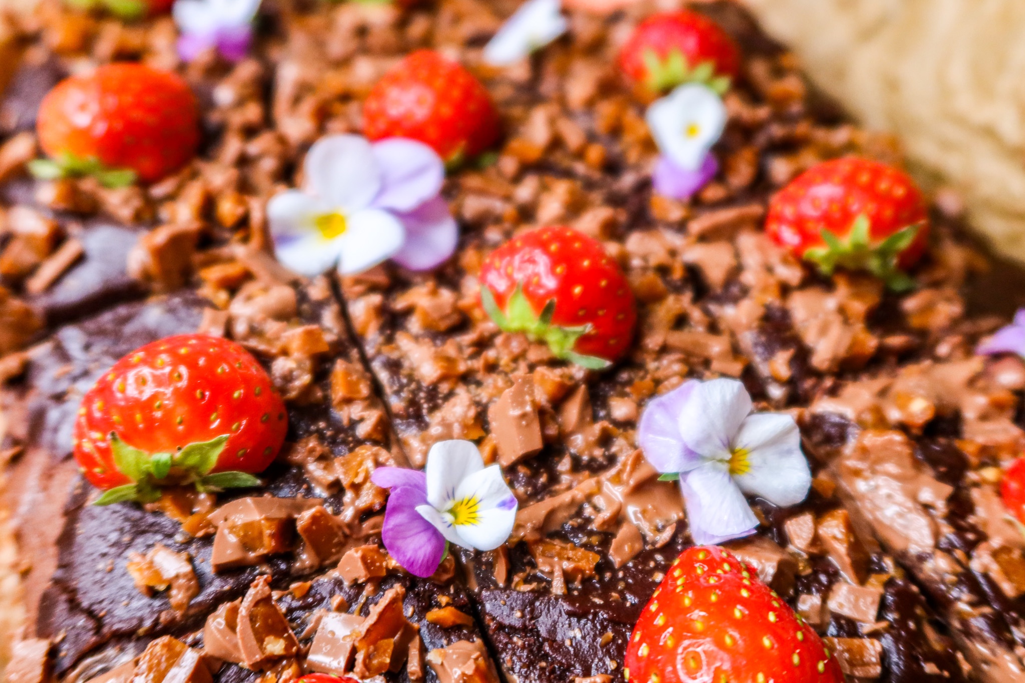 Ätbara blommor och jordgubbar