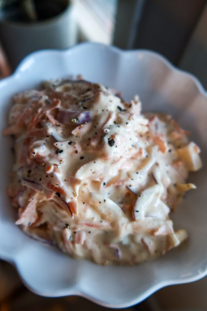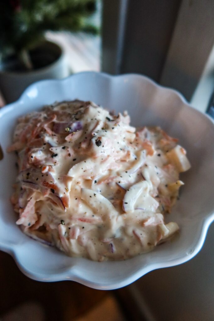 - Rör om tills du har en krämig Coleslaw. Ställ gärna i kylen en stund så den får dra till sig.