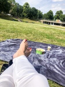 Vi handlade plocksallad och la oss i Rålambshovsparken och åt. Milo hade med sig kickbiken och sladdade runt med den.