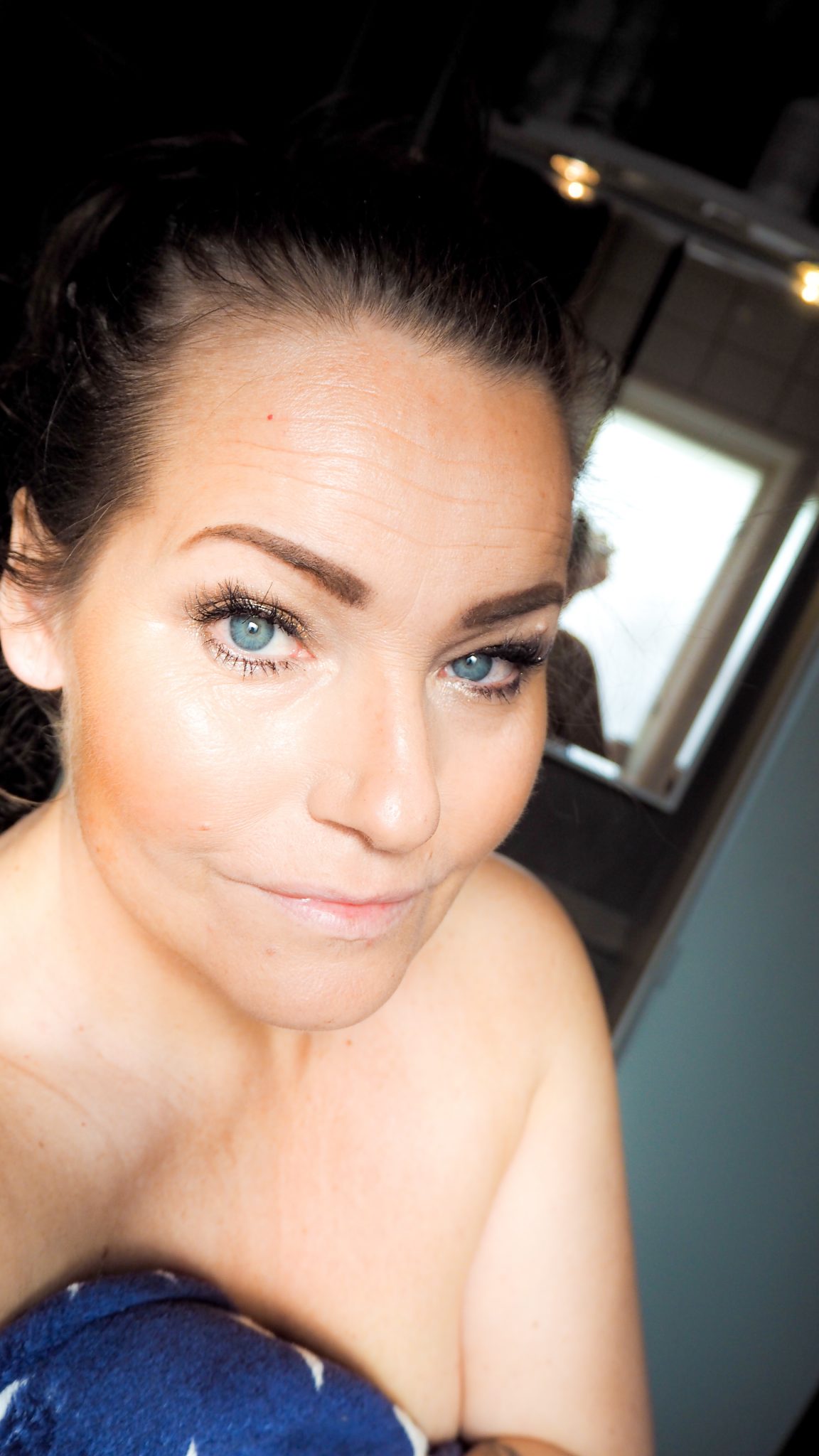 Alltså hur snygg??? Jag dånar av alltså….. Jag var såå spänd på att sminka mig med den. Dels för hur mycket all härlig glitter skulle framhäva mina rynkor men inte alls. Tvärtom! Det kändes som den bakade in allt istället så det blev som en enda härlig shimmerhistoria.