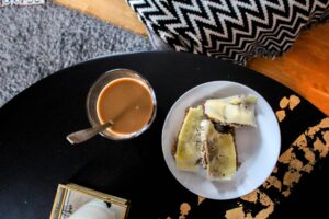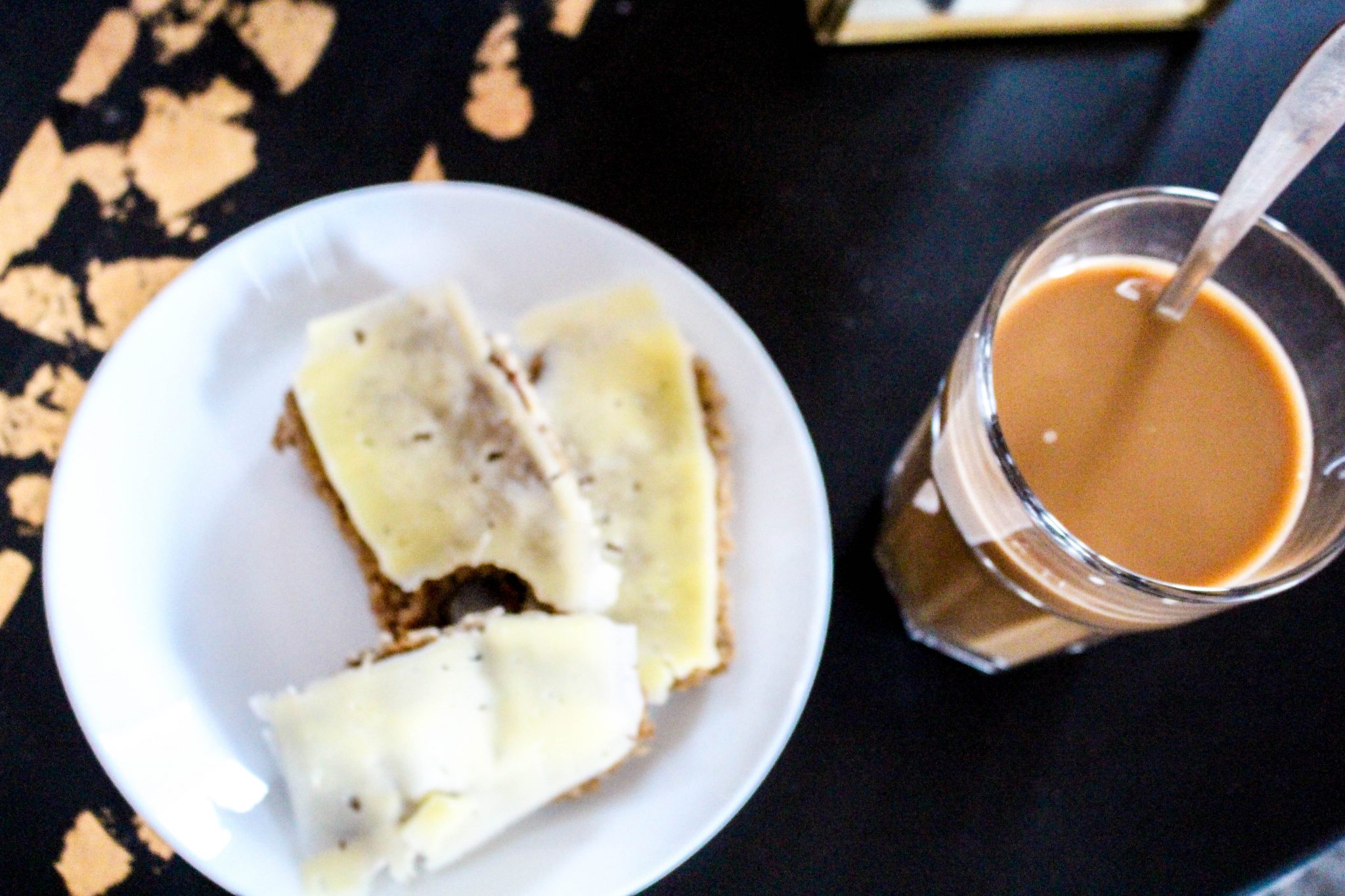3 små skivor och kaffe med havremjölk. Mumma! Brödet var fortfarande varmt så osten smälte uppepå…. dreglar! 😉 Den där limpan jag bakade kommer vara slut imorgon typ, skulle gjort fler.