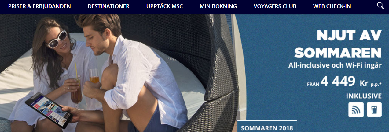 Såhär ser det ut när du kommer in på hemsidan. Som du ser på första sidan där så är det alltså priser från lite drygt 4400 kr/person. Då är det All Inclusive också….. Tar du sen ett billigt flyg så är det som en charterresa ju. Tror att detta kanske får lov att bli ”The trip 2018″…… nu åker vi inte längre till Thailand och Kanarieöarna, nu tar vi en lyxig jädrans kryssning alltså och får se 4 länder till på köpet. 😉