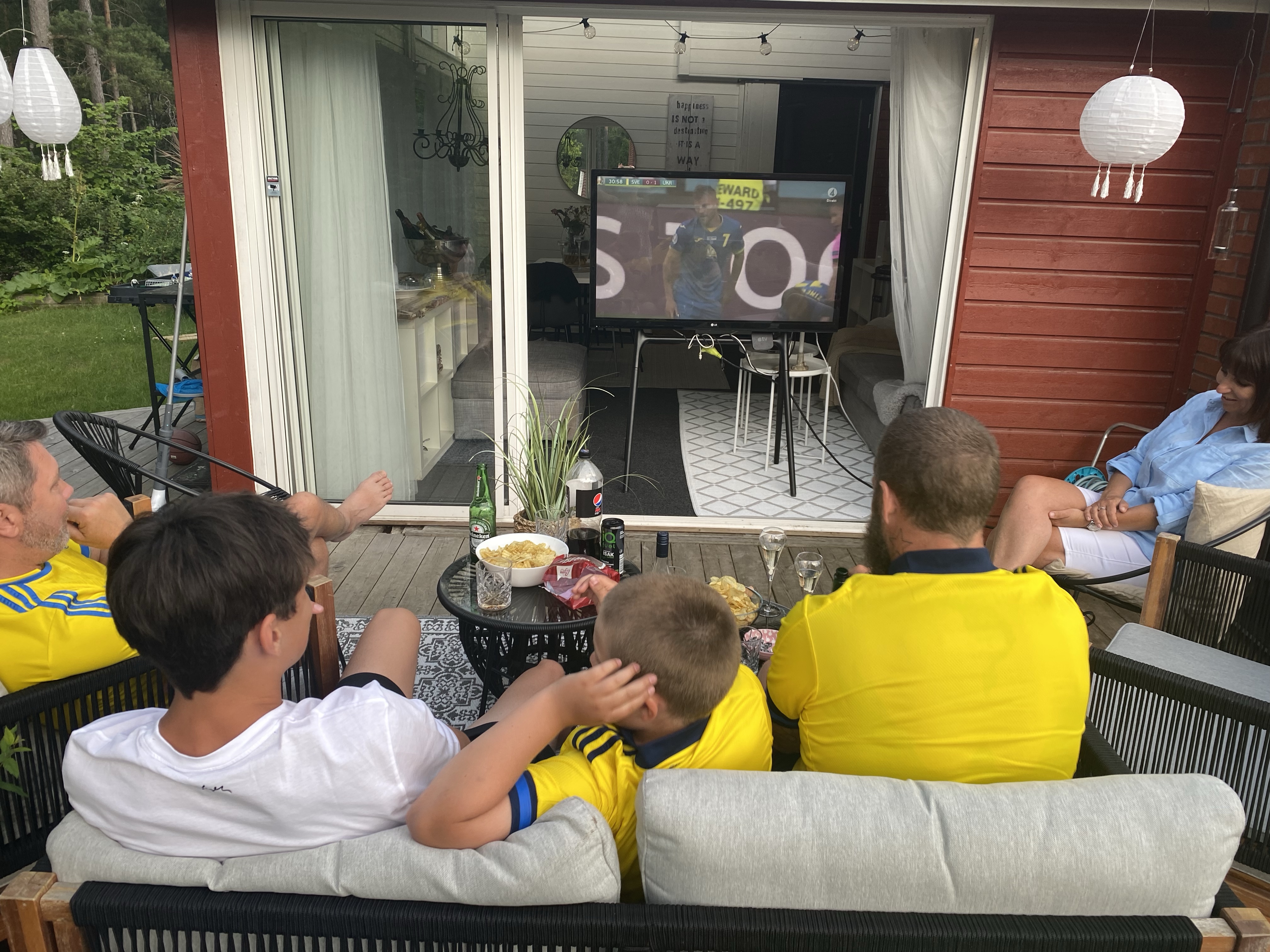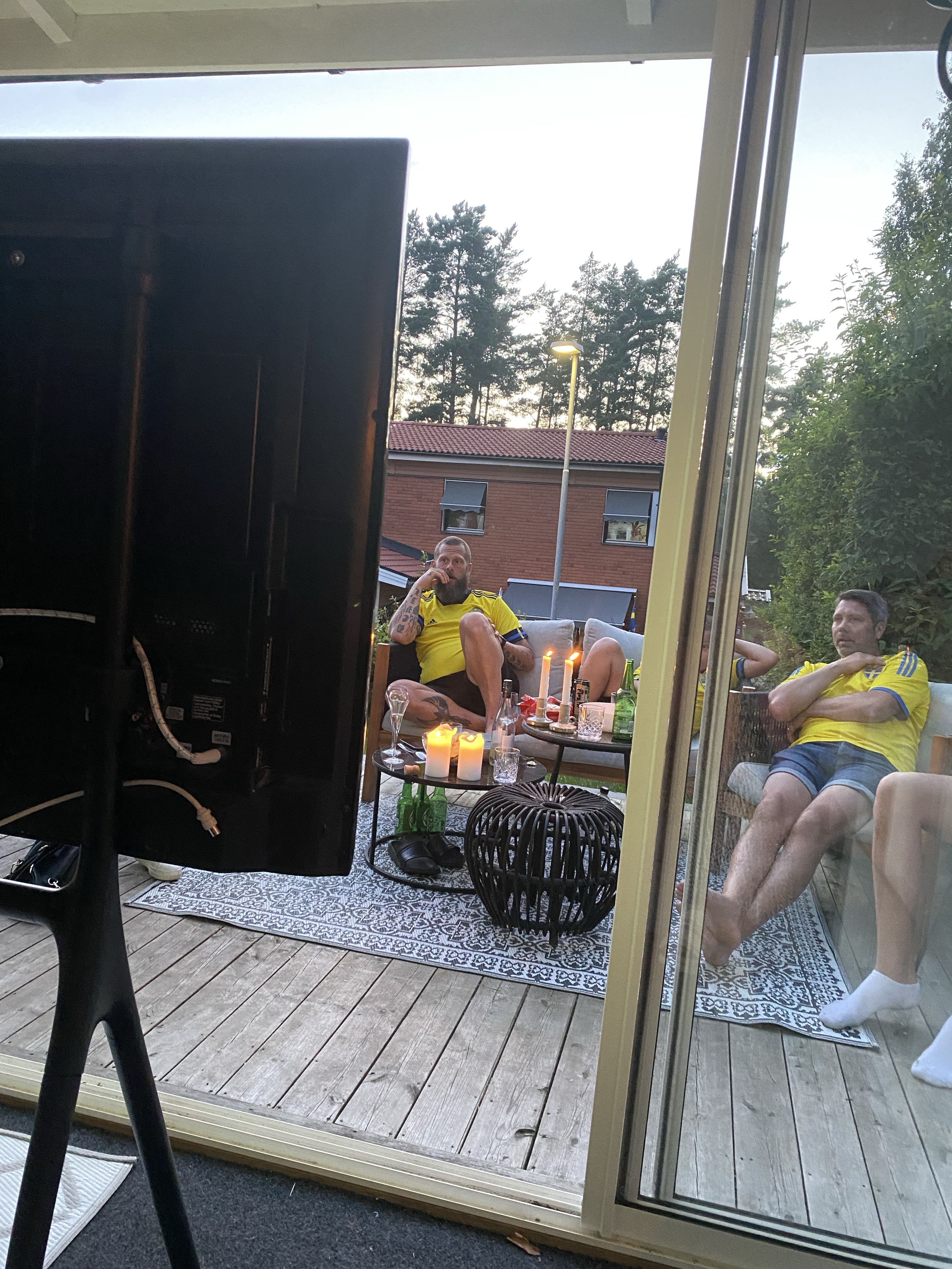 Vår ”sista” fotbollsstudio flyttades ut. Magnus, Maria och hennes Noel (ja det är lite lustigt att min bästa vän Marias son också heter Noel) var här och mös med oss. Så kul med folkfest ju, vi har gått all in på varje match! ❤️🇸🇪