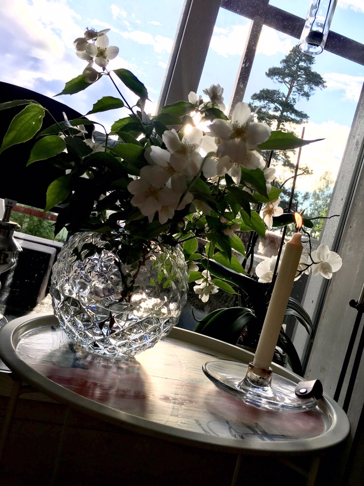 Har ändå varit midsommarkänsla inne hos oss här hemma! Har tänt ljus och halva trädgården är intagen i vaser här och där.